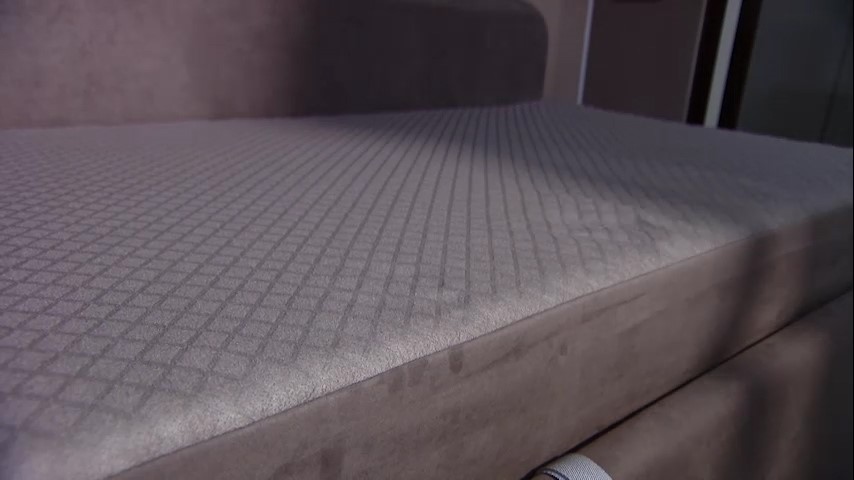 Спальное место в зоне отдыха представлено кроватью Capri и ортопедическим матрасом Alfa бренда «Сонум».