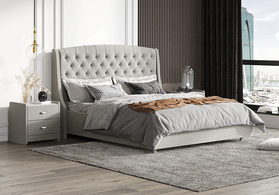 Изголовье и изножье – деревянные или оббитые дорогим текстилем с пуговками, как в модели Ancona: