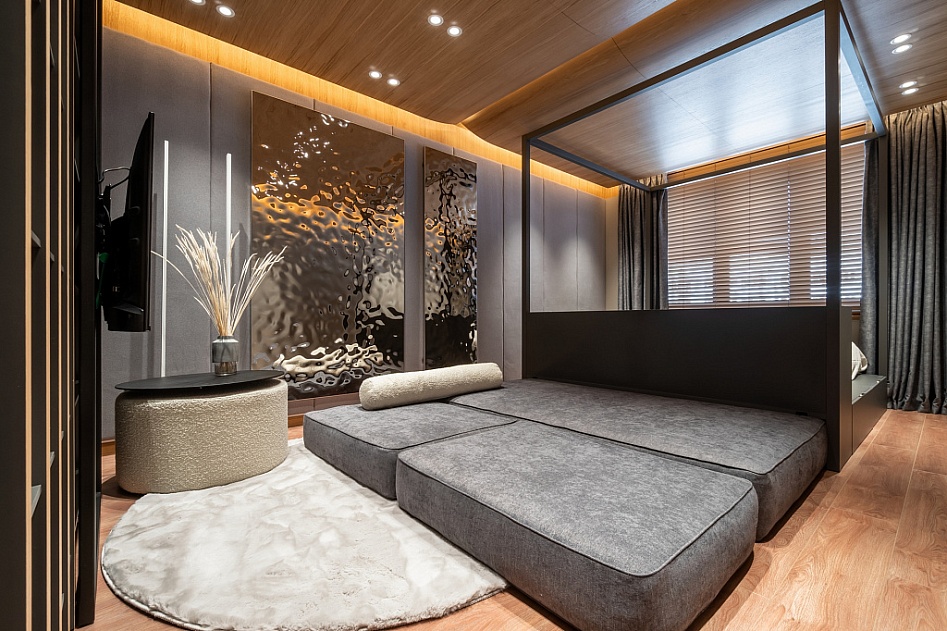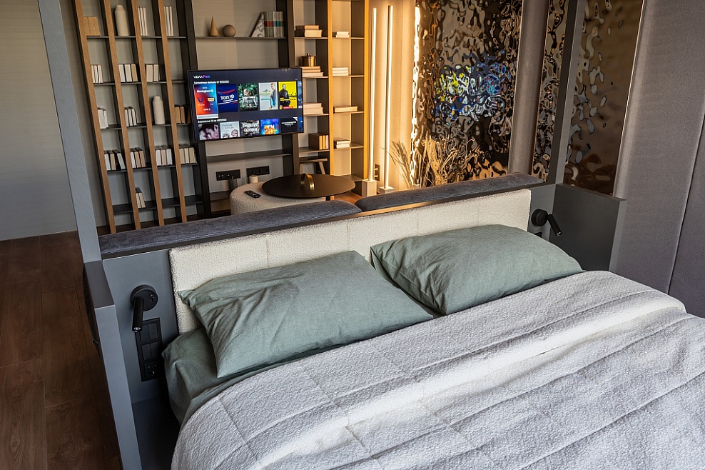 Спальня-гостиная с чёрным кубом 7