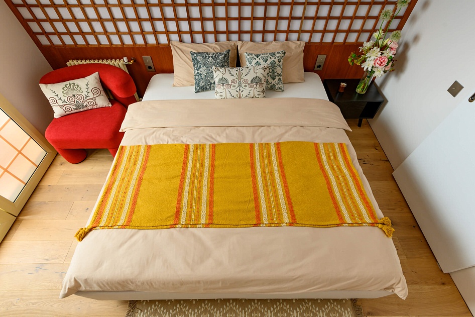 Центр комнаты займёт удобная, просторная кровать Scandinavia, с которой можно будет смотреть фильмы – за это будет отвечать закреплённый над кроватью проектор.