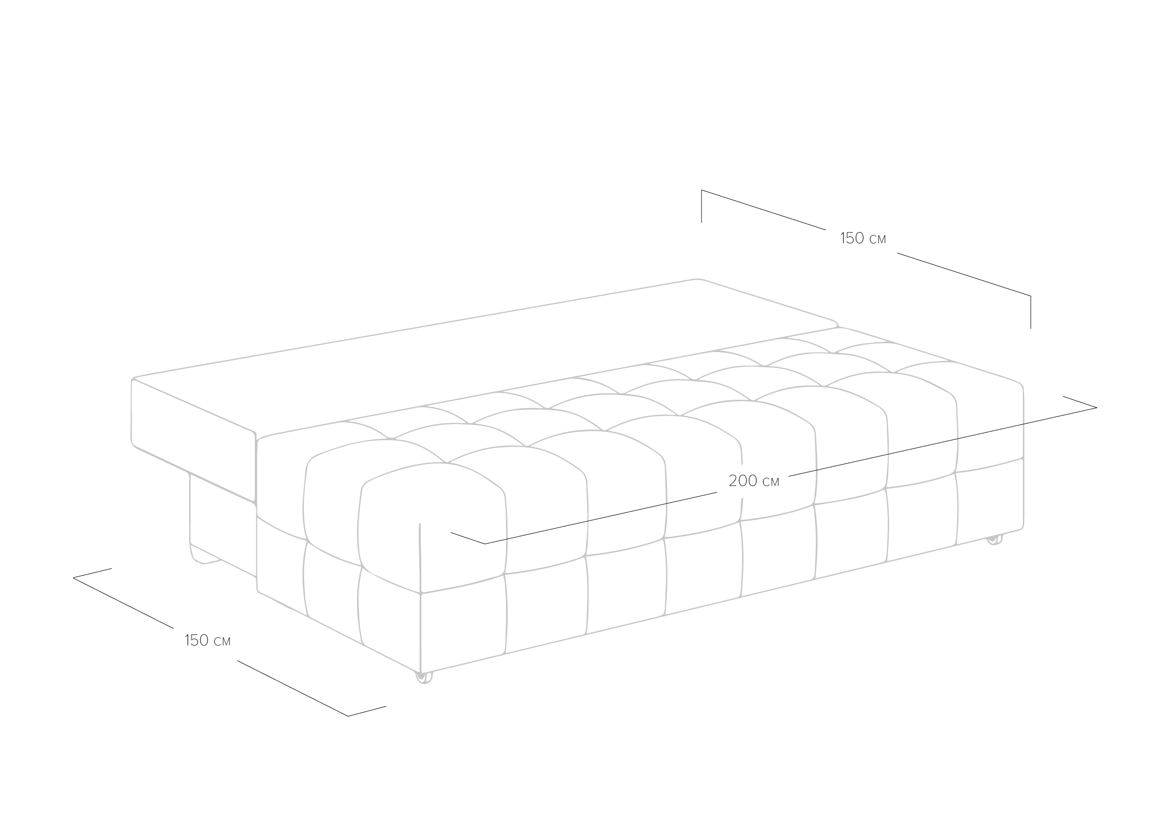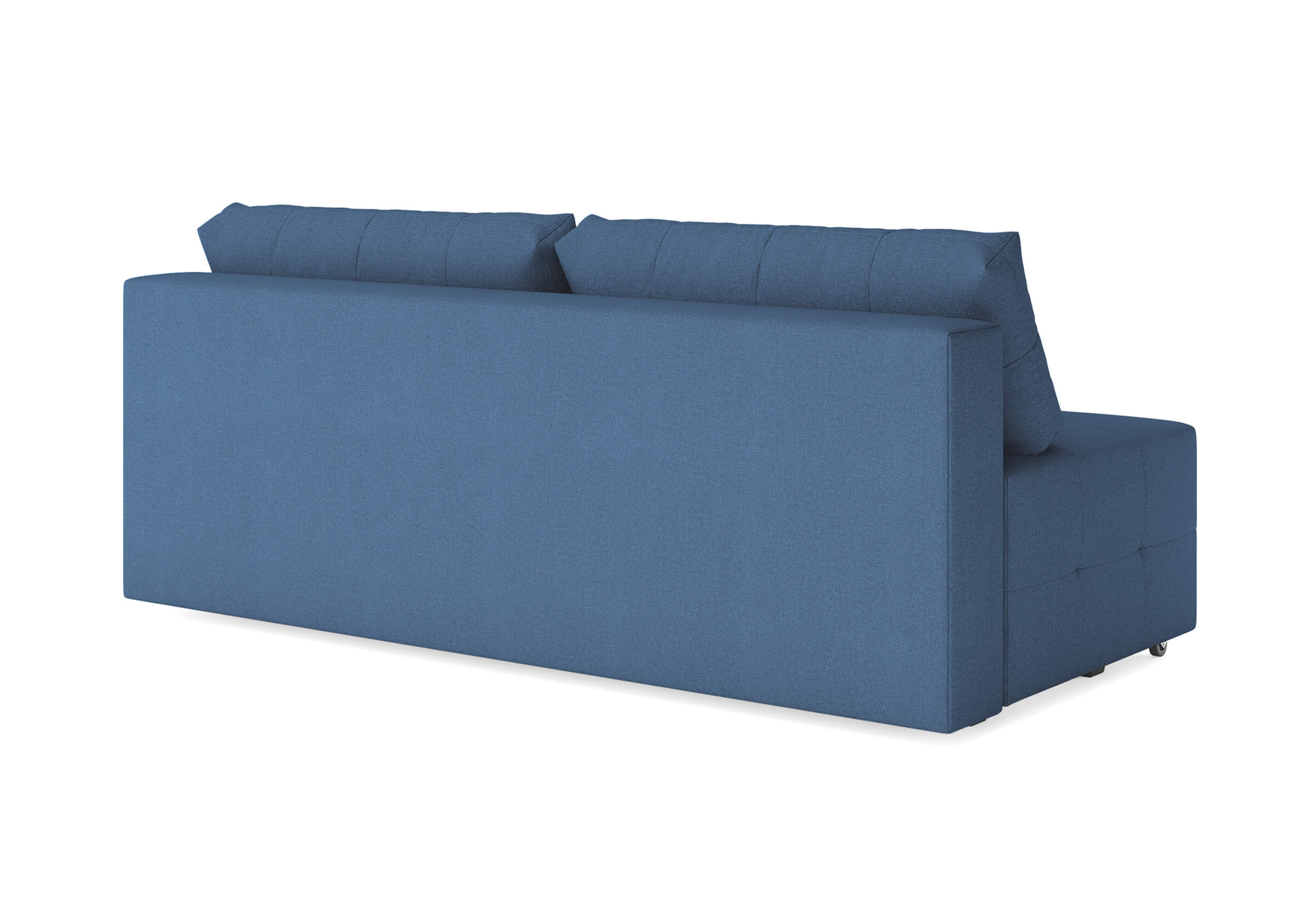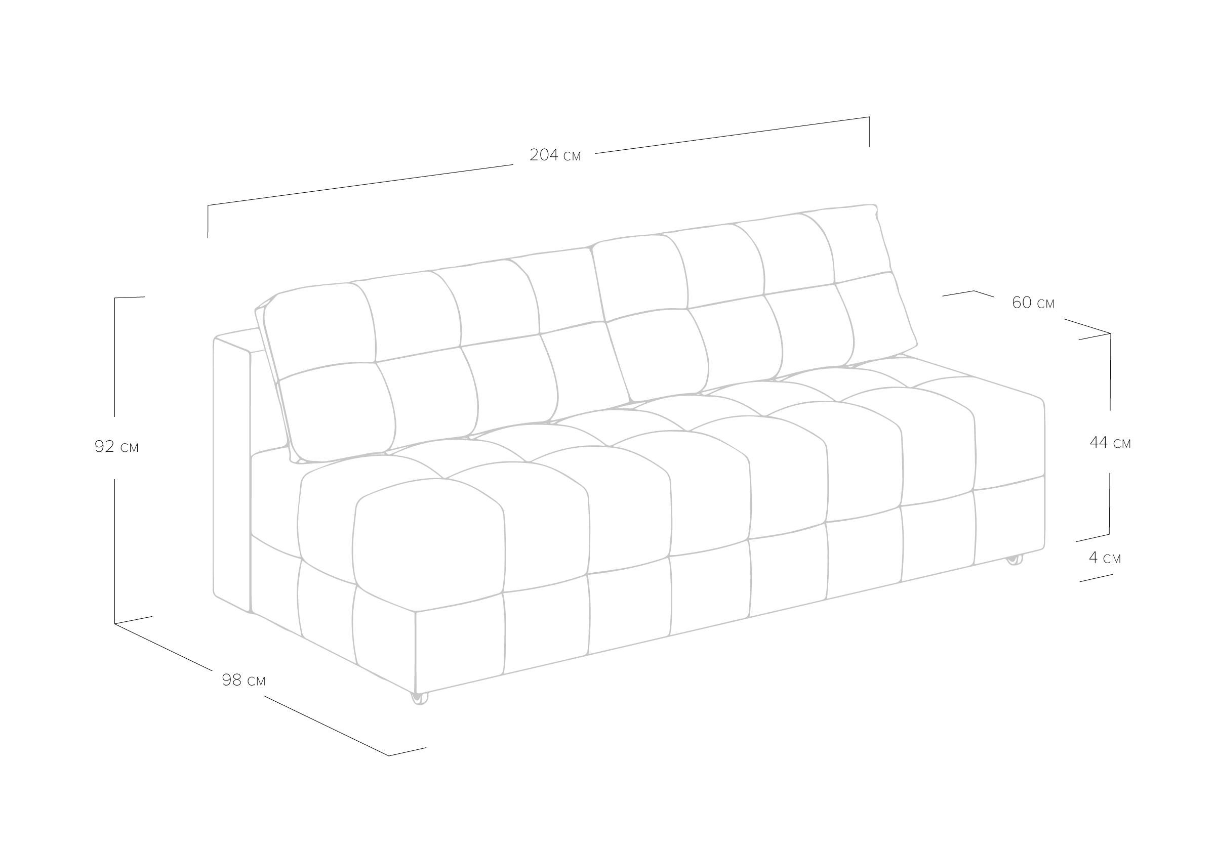 Диван в современном стиле без подлокотников с механизмом трансформации еврокнижка и коробом для хранения. Благодаря объемной стежке в форме квадратов, отсутствию подлокотников и минимальным габаритам диван подойдет для активного городского жителя. Матрас анатомический с независимым пружинным блоком обеспечит комфортное спальное место. В основе мягких подушек – микс наполнителей: поролоновая крошка не дает деформироваться, а синтетическое волокно добавляет комфорт.