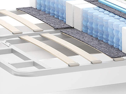 Металлическое основание имеет встроенные березовые ламели, обеспечивает равномерное распределение нагрузки.