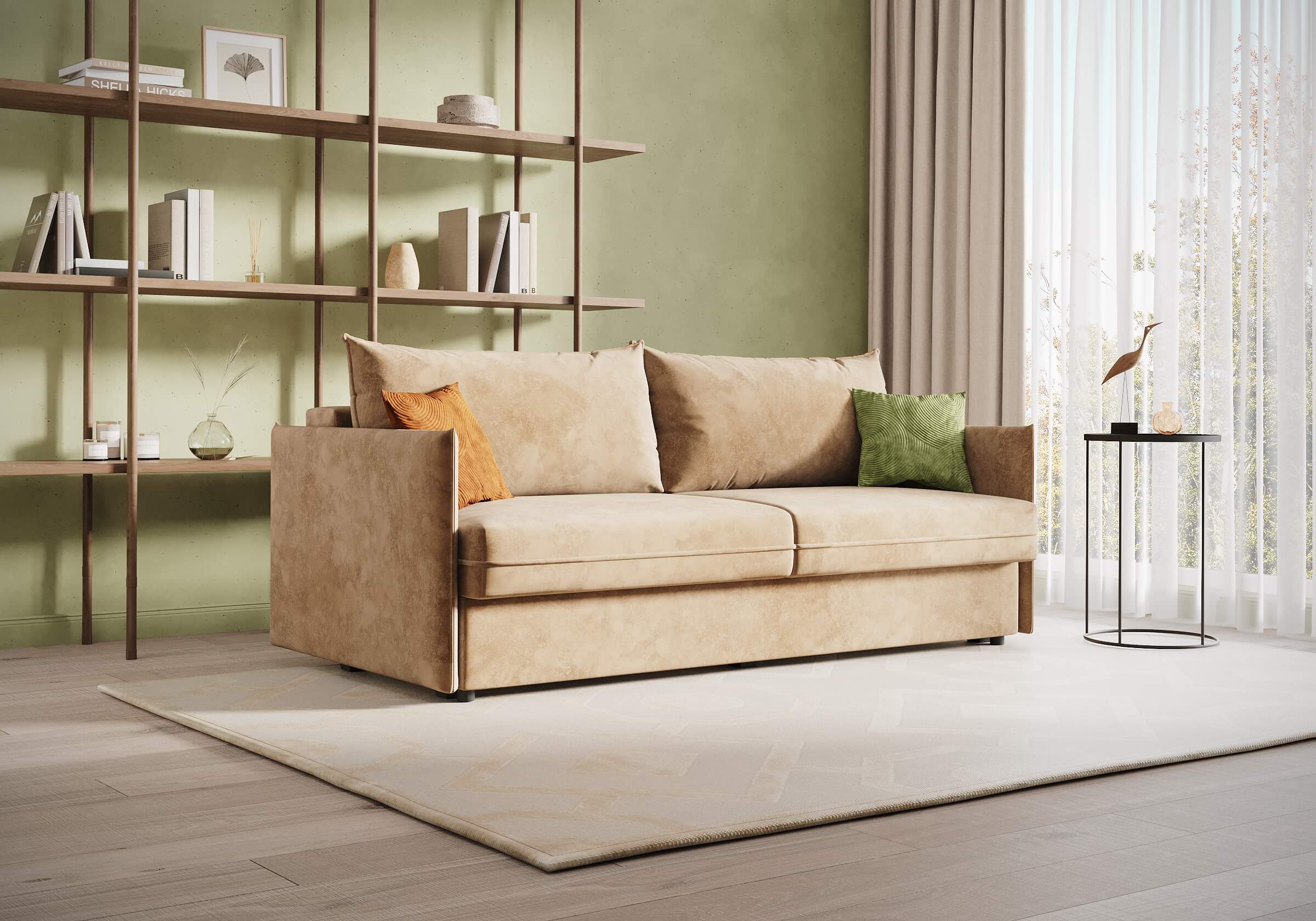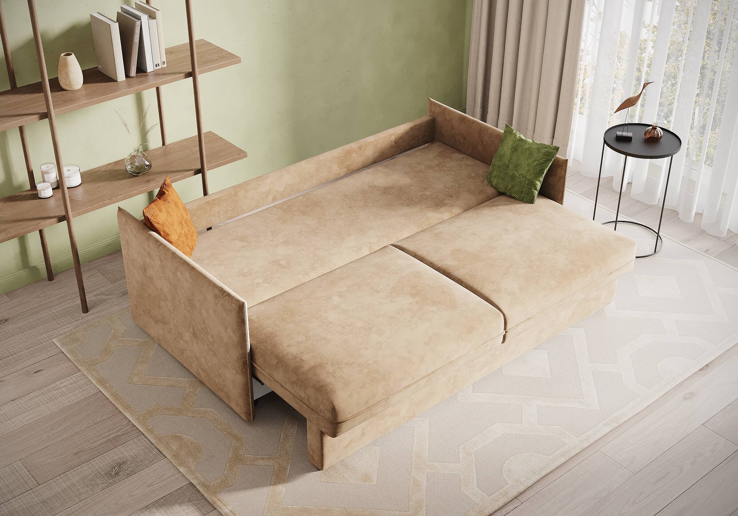 Функциональный и лаконичный внешний вид дивана, делает его идеальным дополнением интерьера городской квартиры. Эта модель прекрасно впишется как в просторную гостиную, так и в компактную квартиру-студию. Благодаря отсутствию броского декора, прямым линиям и узким мягким подлокотникам, диван экономит пространство и придаёт интерьеру утончённый вид. Диван обеспечивает комфорт благодаря оптимальной глубине и высоте сиденья. Механизм трансформации «пантограф» идеально подходит для ежедневного использования, обеспечивая лёгкость и удобство в эксплуатации. Анатомический матрас с блоком независимых пружин средней жёсткости гарантирует комфортный отдых и здоровый сон. Задняя спинка дивана защищает стены от загрязнений и повреждений, что продлевает срок службы мебели. В диване предусмотрено место для хранения, что позволяет рационально использовать пространство в квартире.