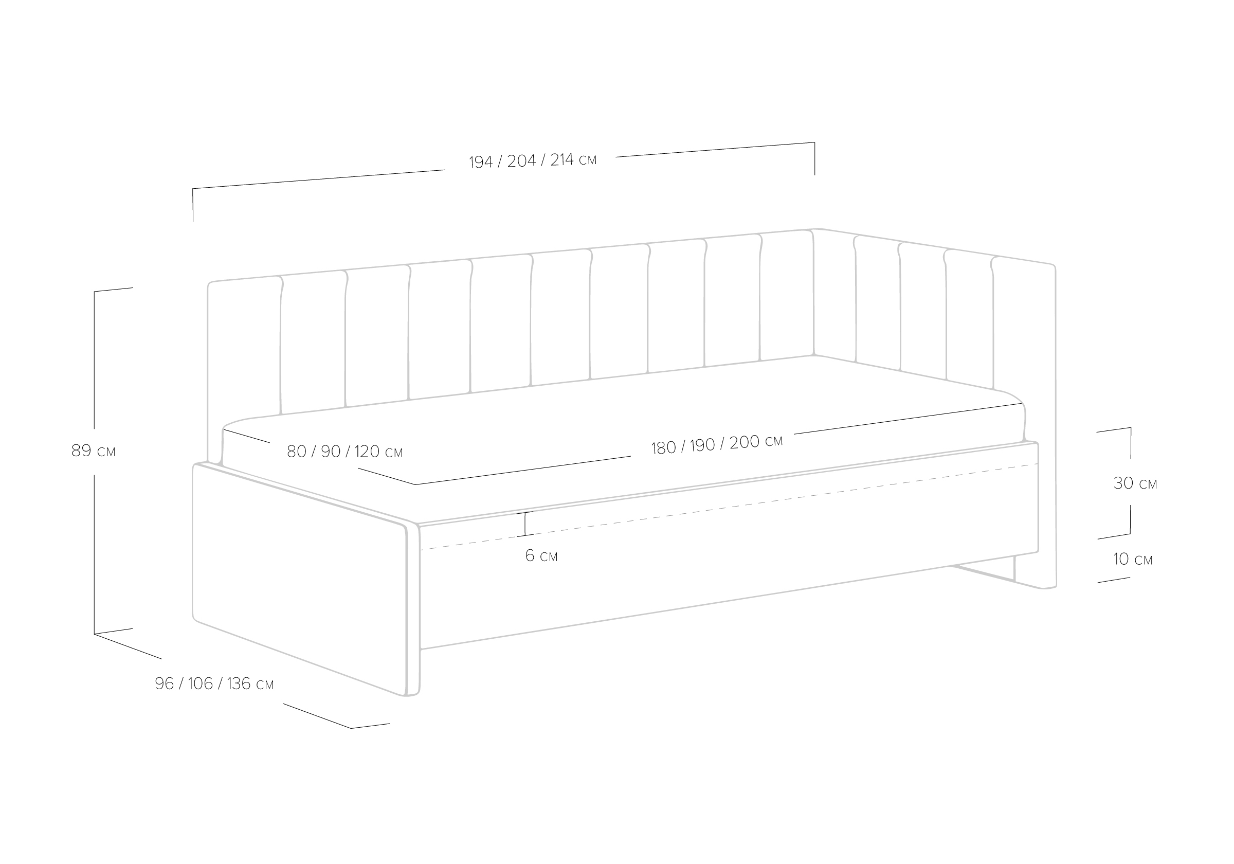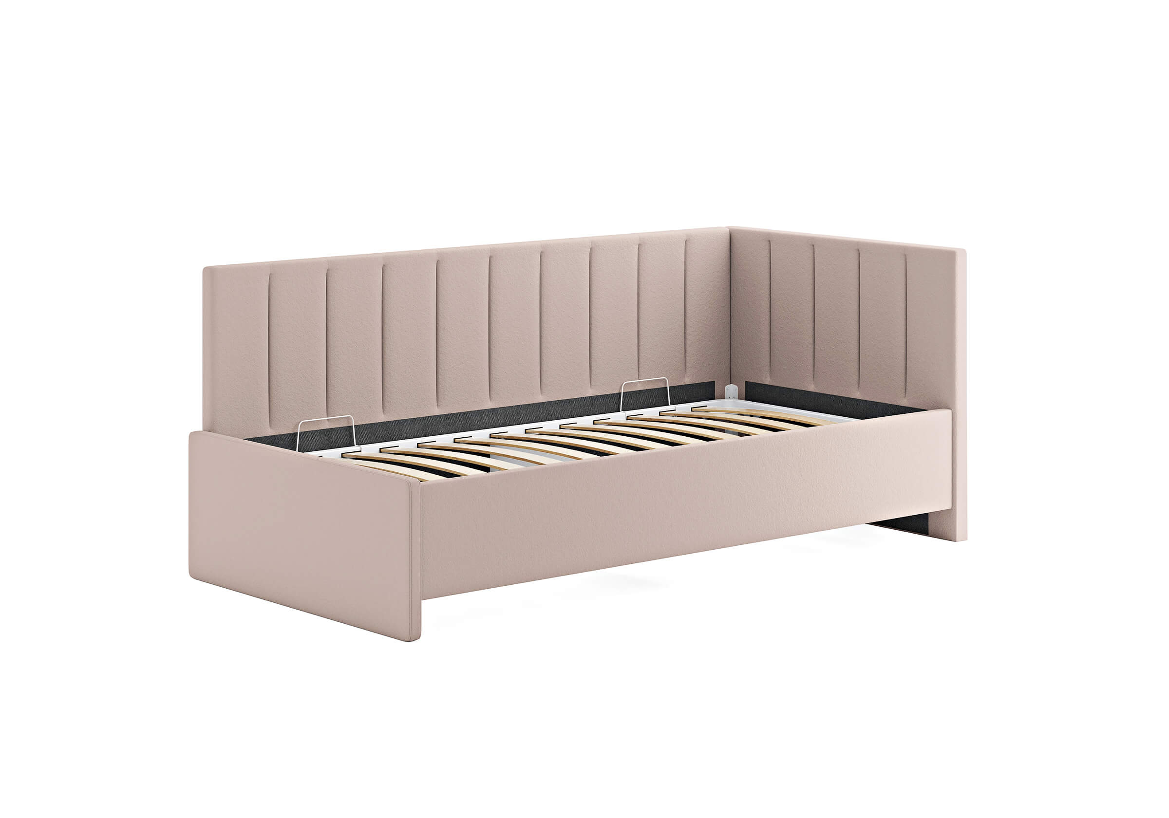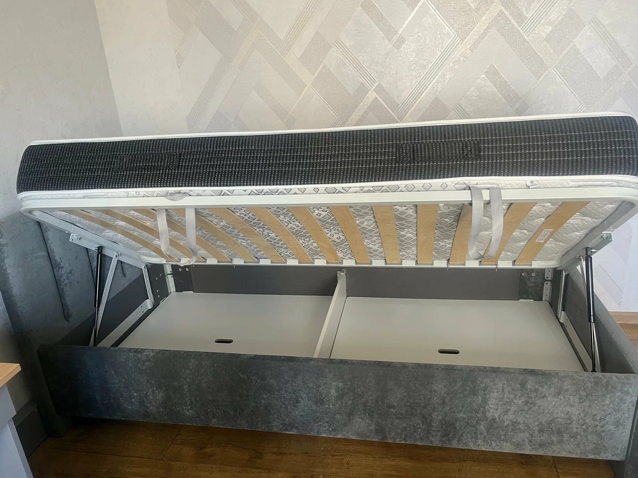 Возможна установка подъемного механизма со вместительным бельевым ящиком. Дно бельевого ящика легко сдвигается для обеспечения уборки под кроватью.