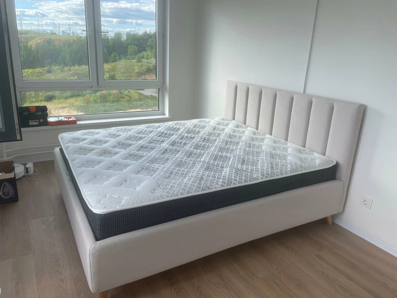 Матрас – удобный, средней жесткости, не очень дорогой, сделали на него даже скидку. Кровать – супер, ткань как и выбирали, в живую даже лучше выглядит, очищается хорошо. Всё стильно, красиво. Сотрудники помогают с выбором и предлагают выгодные предложения. По цене у нас вышло на всё около ~73к. Доставка в срок. Рекомендую!