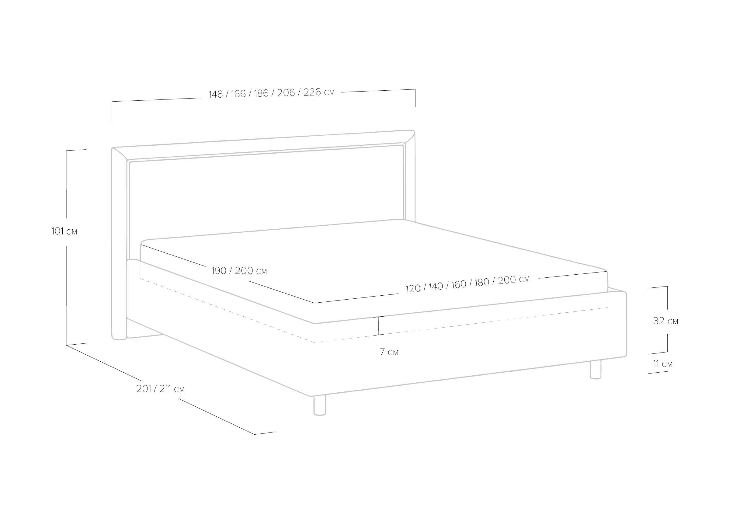 Увеличенная высота ножек позволит осуществлять легкую уборку под кроватью, в том числе с помощью робота-пылесоса.