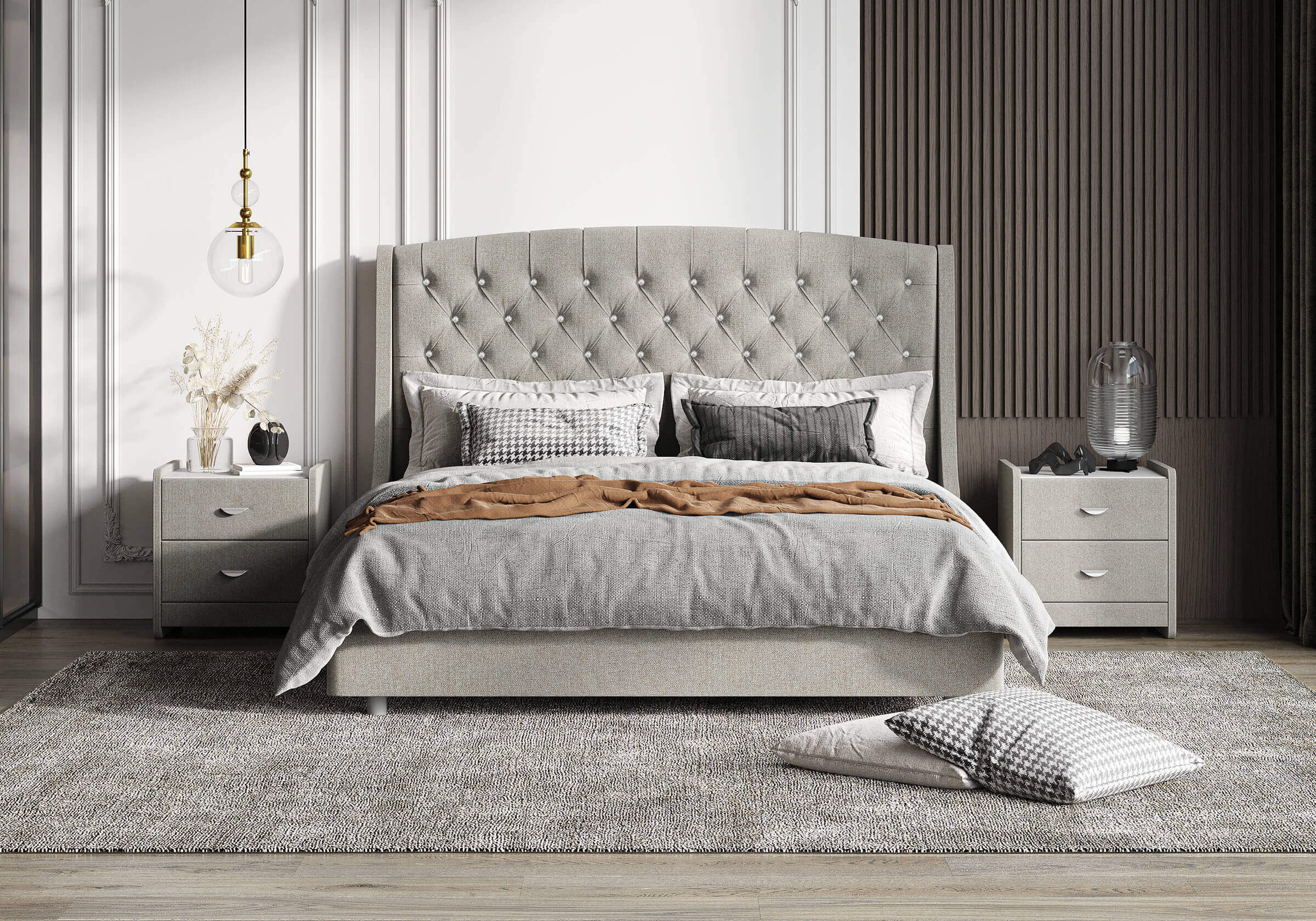 Стильная и комфортная интерьерная кровать. Кровать выглядит гармонично как в классическом интерьере, так и в современном, что открывает простор для смелых дизайнерских решений. При необходимости кровать может быть укомплектована разборным или неразборным металлическим основанием с ламелями, подъемным механизмом с бельевым ящиком, трансформируемым основанием Aquarius.