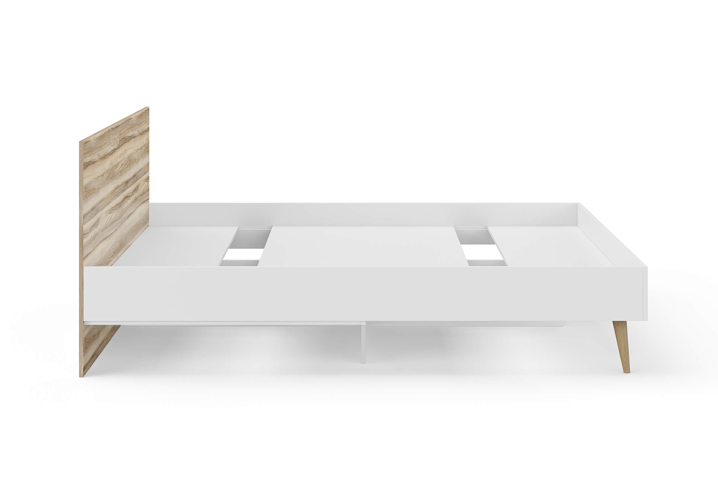 Основание кровати на деревянных ножках. Благодаря увеличенной высоте позволяют осуществлять легкую уборку под кроватью, даже с помощью робота-пылесоса.