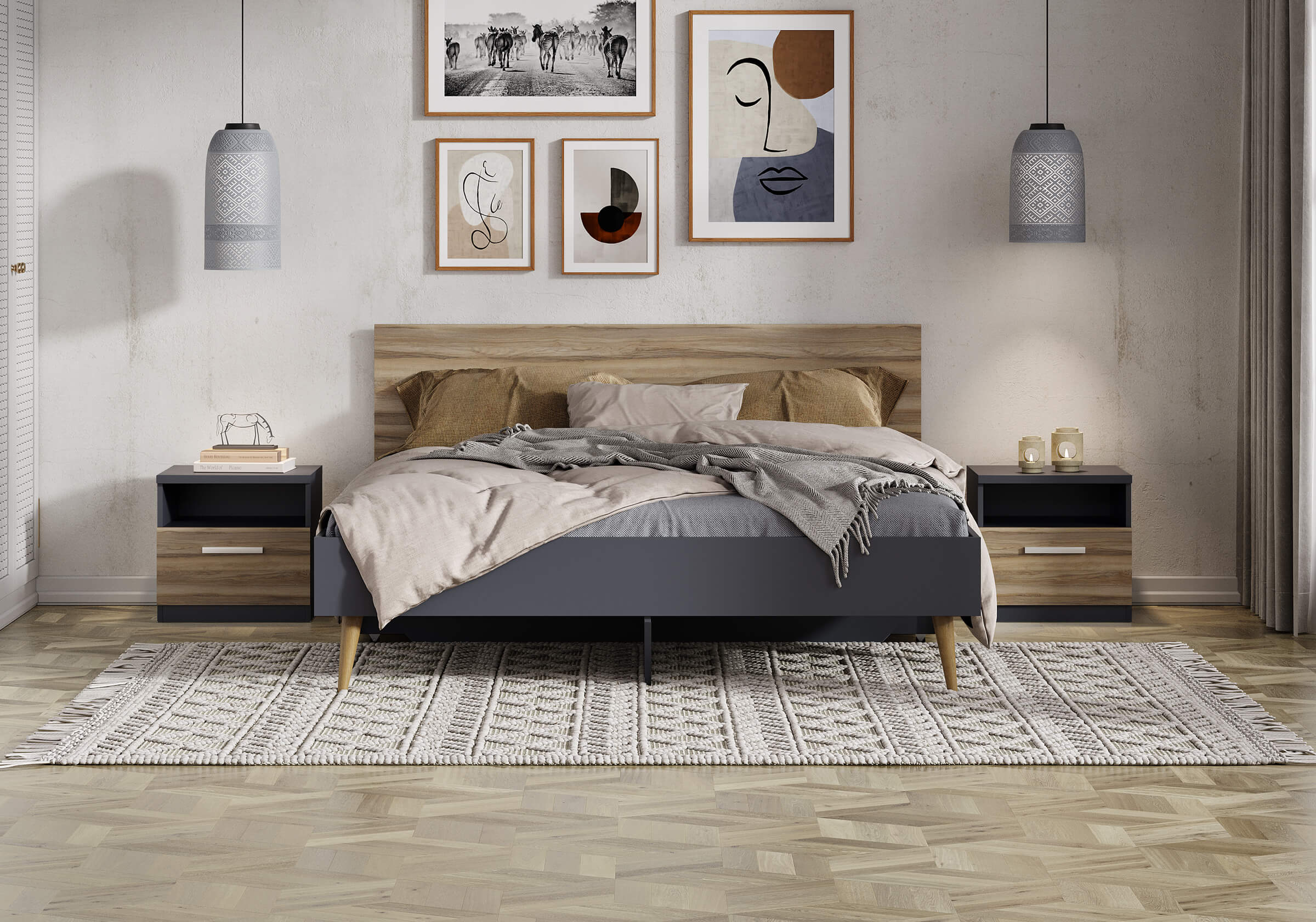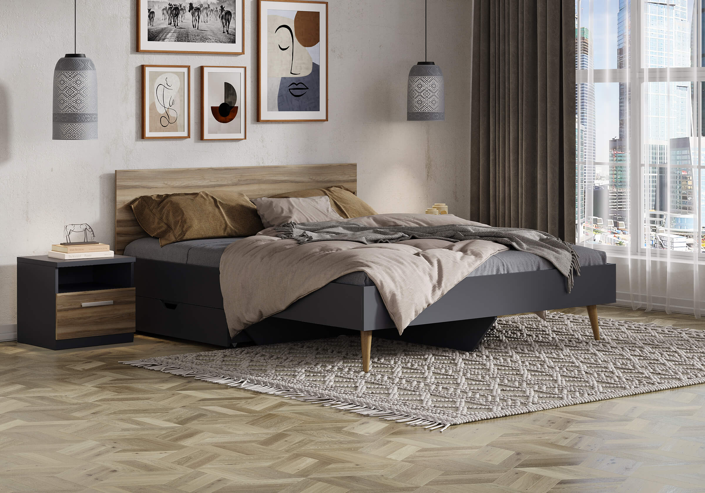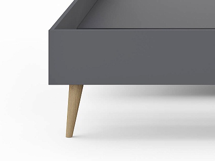 Основание кровати на деревянных ножках. Благодаря увеличенной высоте позволяют осуществлять легкую уборку под кроватью, даже с помощью робота-пылесоса.