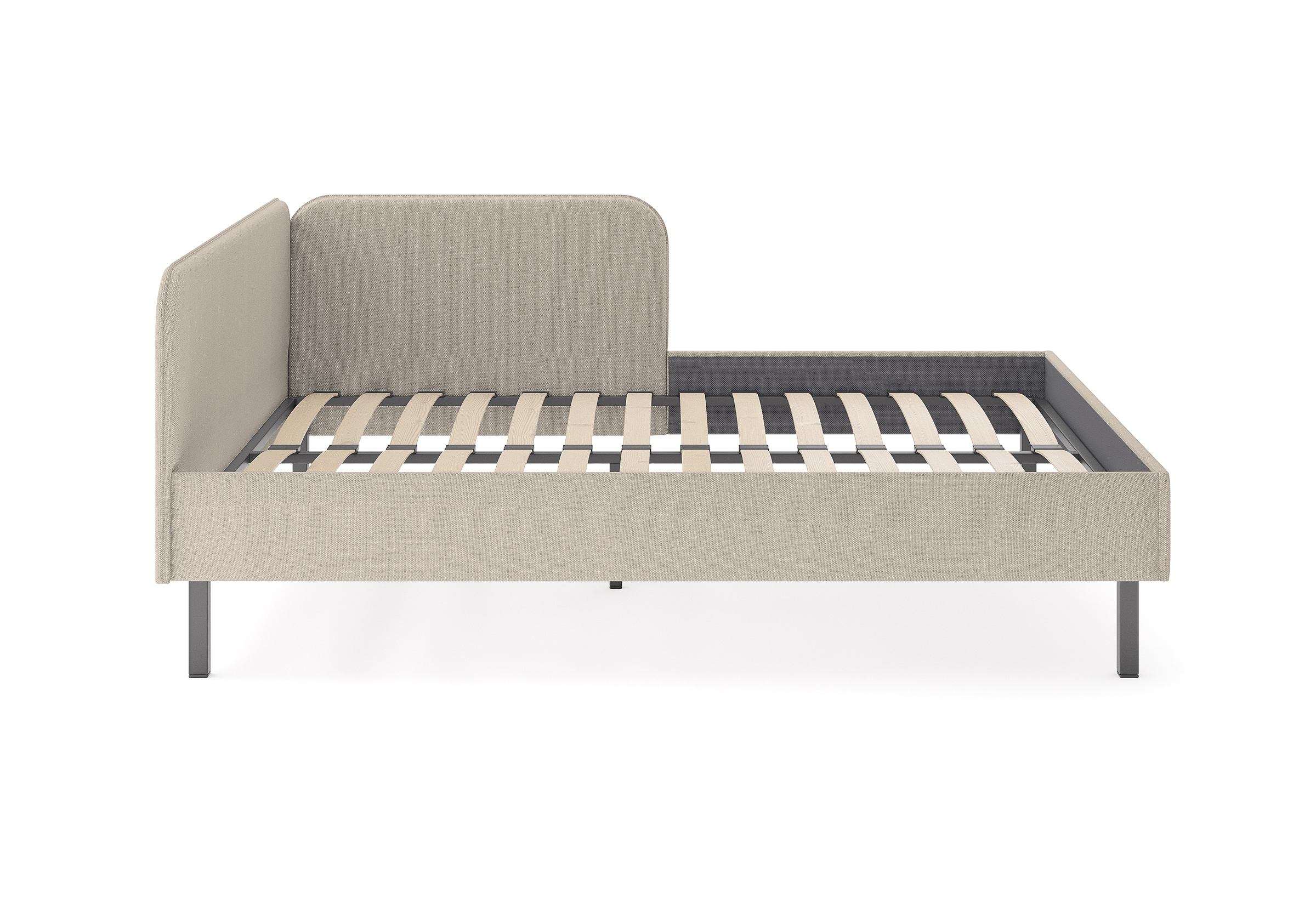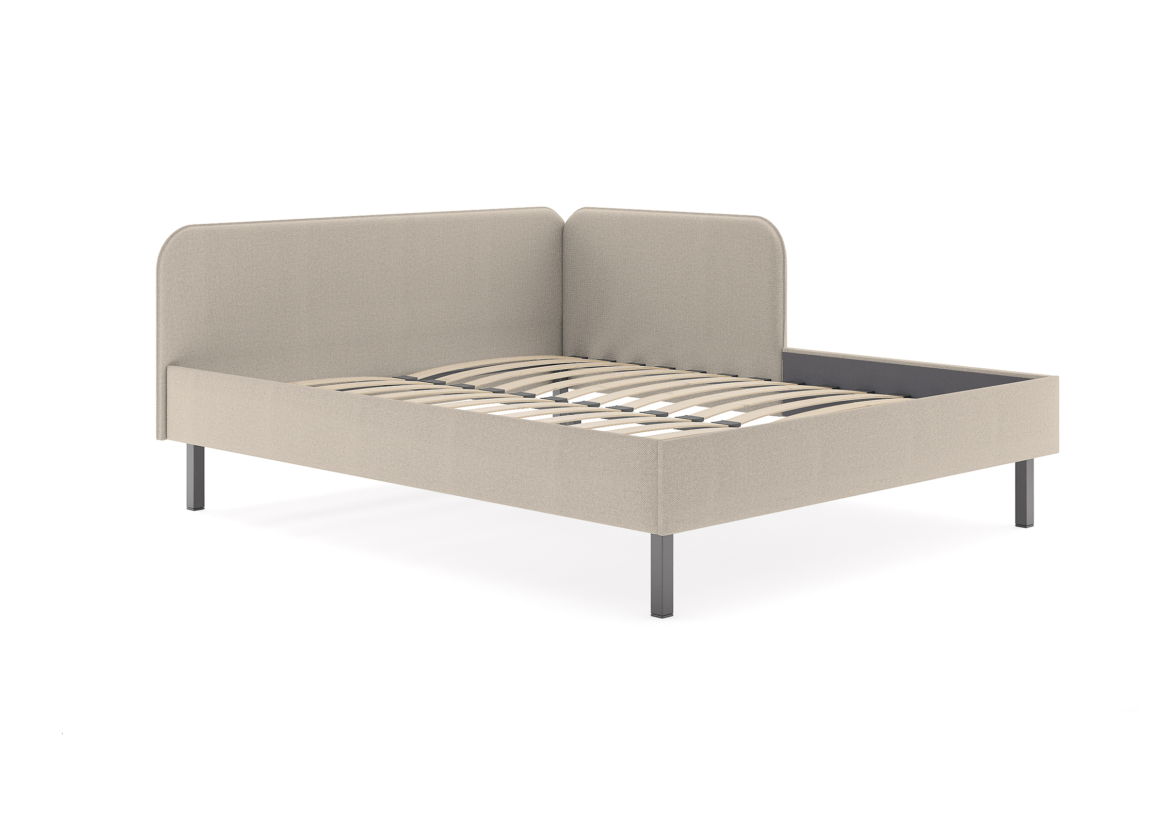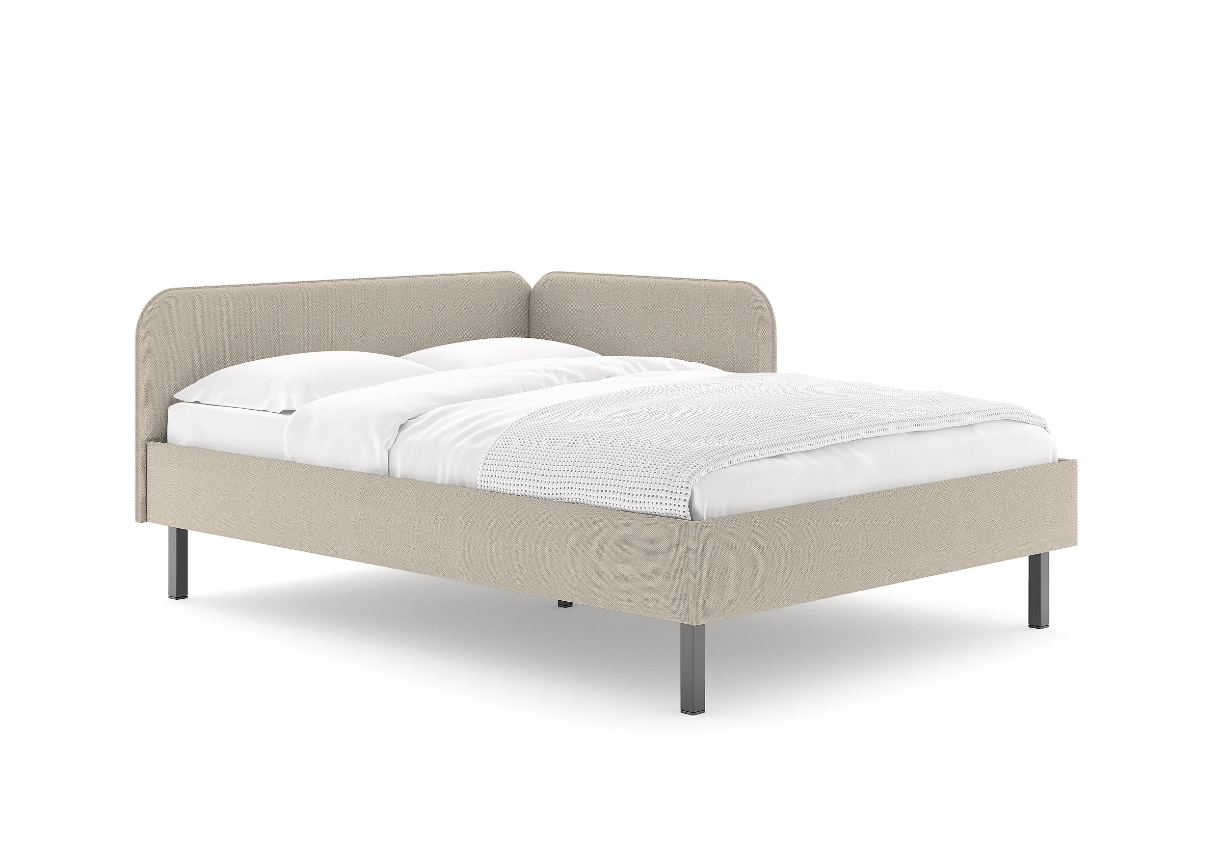 Лаконичная кровать Julia подойдет для спален в скандинавском стиле и стиле минимализм. Мягкое изголовье в рогожке популярных цветов, закругленные углы, декоративный кант, узкие царги делают кровать универсальной для большинства современных интерьеров. Угловое изголовье создает уютную атмосферу. Боковая спинка составляет половину царги, устанавливается на выбор с правой, или с левой стороны кровати. Благодаря двойному изголовью кровать можно разместить в любом месте комнаты. Увеличенное расстояние до царг способствует легкой уборке под кроватью роботом – пылесосом. Модель может комплектоваться только неразборным ортопедическим основанием с ламелями. Основание выполняет роль металлического каркаса кровати, изголовье и царги надежно крепятся между собой, обеспечивая прочность и устойчивость. Опционально устанавливаются ящики для хранения в ткани (приобретаются дополнительно) и тумбы выкатные(приобретаются дополнительно)
