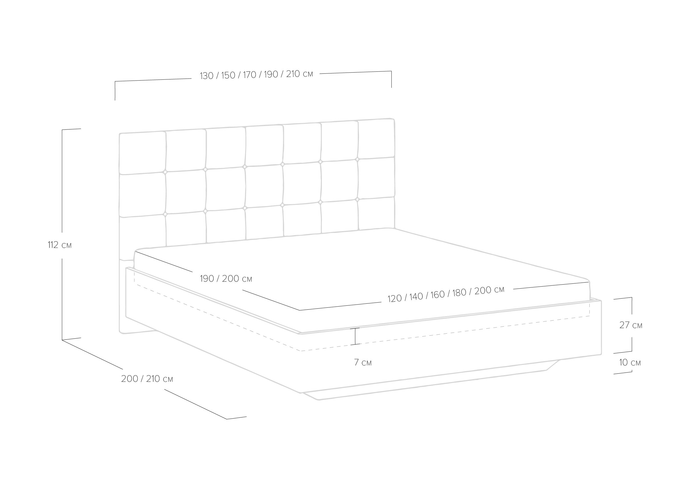 Возможность установки подъемного механизма со вместительным бельевым коробом, 13 см глубиной. Дно бельевого ящика легко сдвигается, что позволяет просто убраться под кроватью.