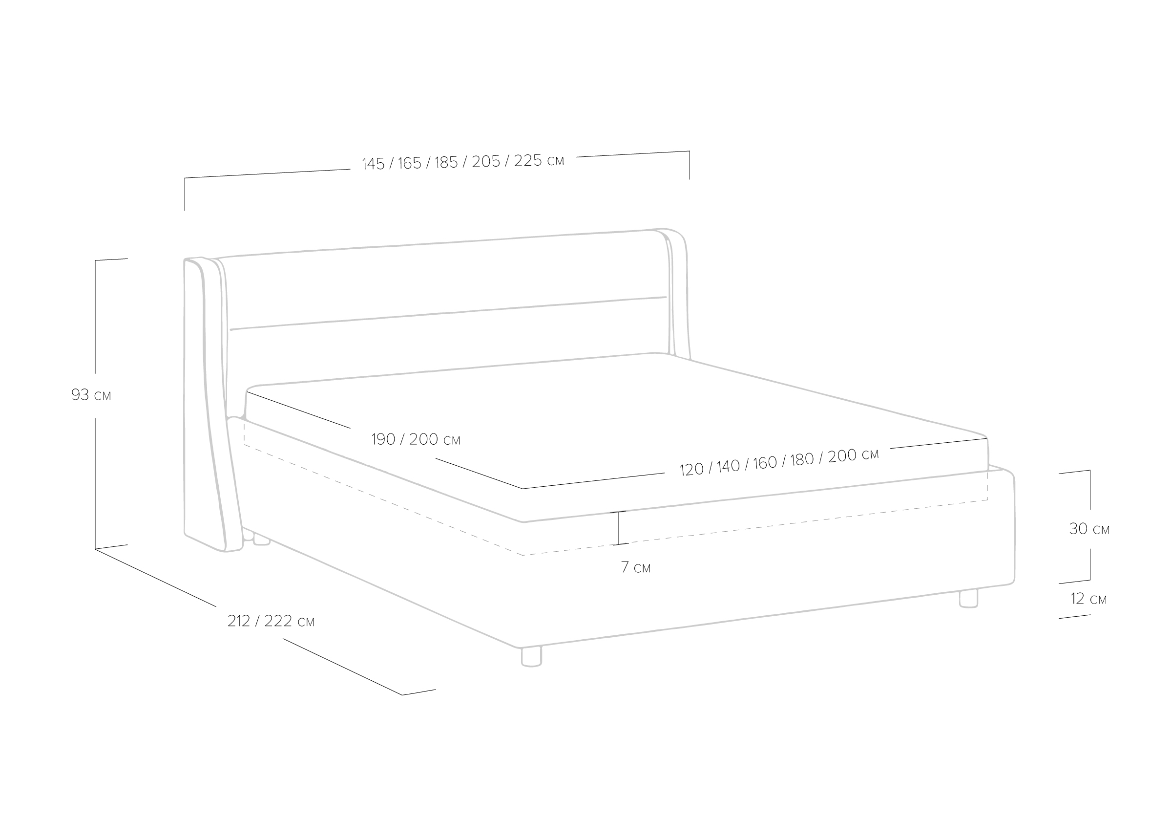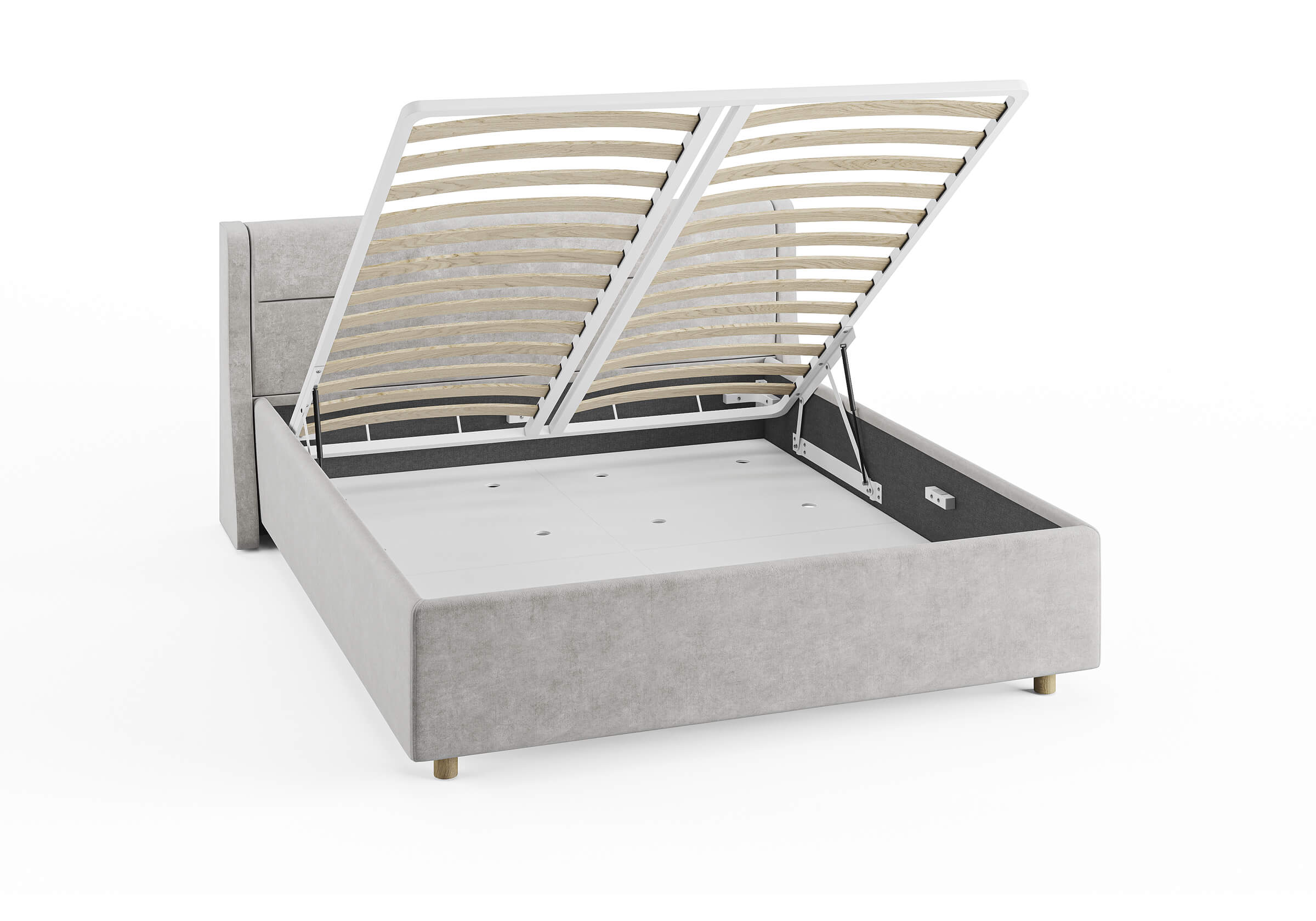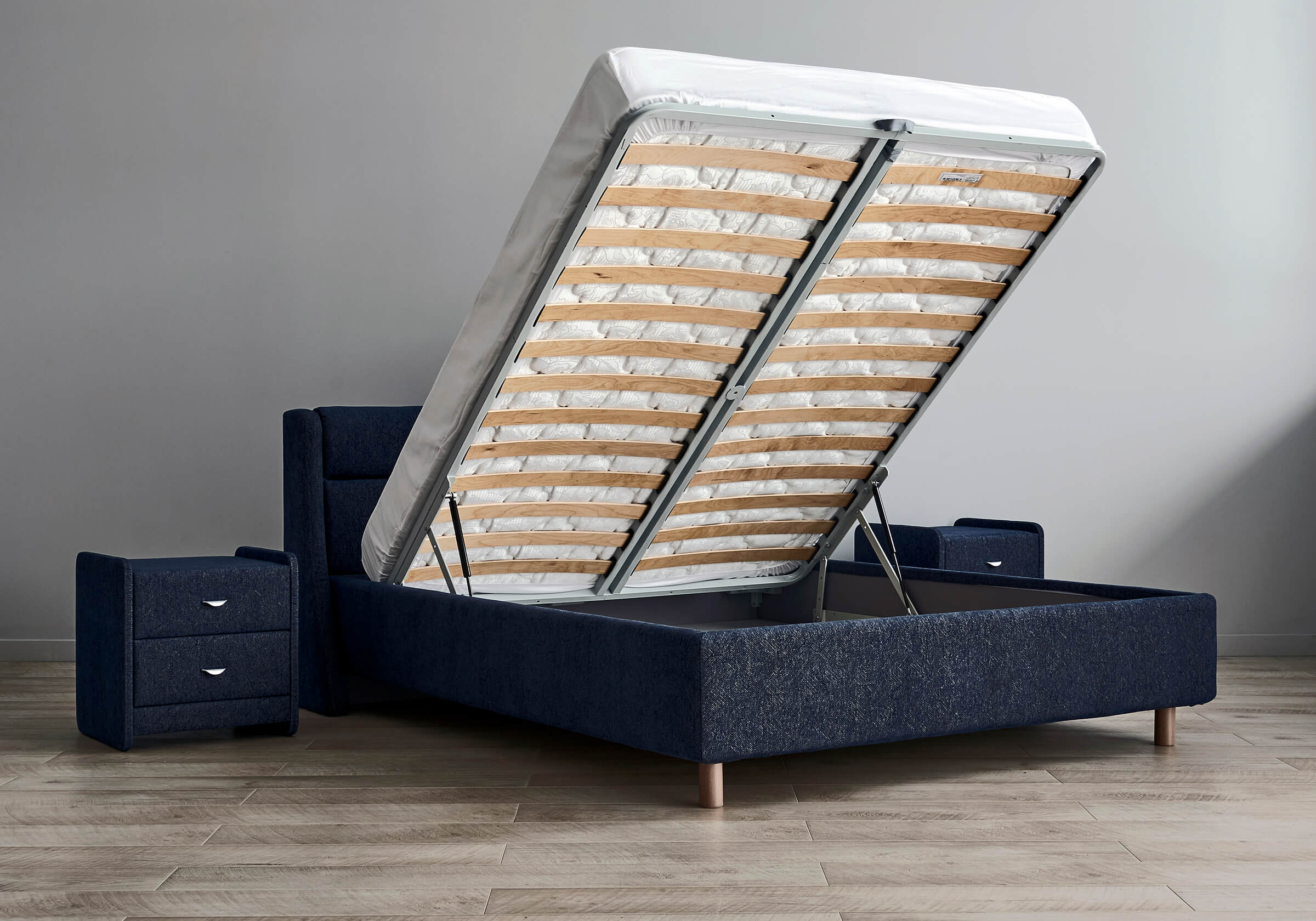 Возможна установка подъемного механизма со вместительным бельевым ящиком. Дно бельевого ящика легко сдвигается для обеспечения уборки под кроватью.