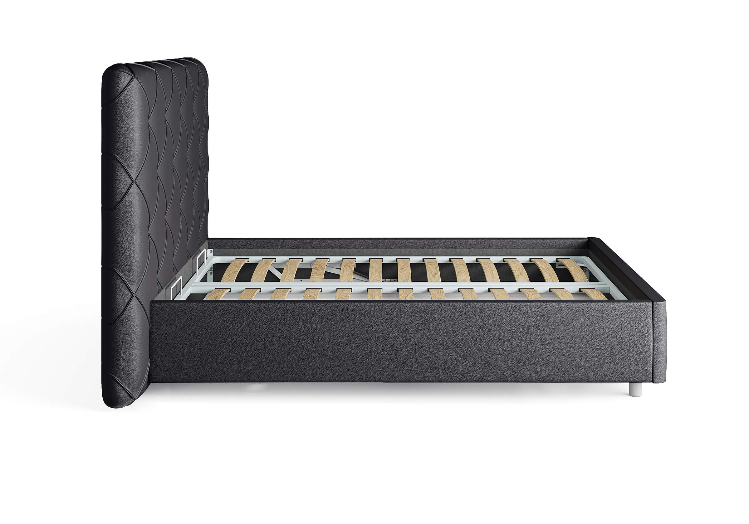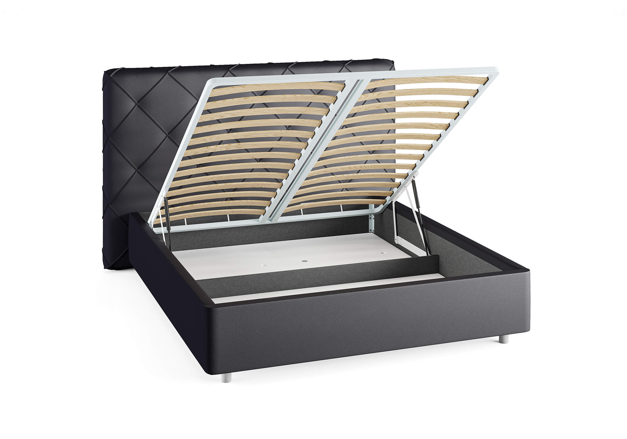 Возможность установки подъемного механизма со вместительным бельевым ящиком. Дно бельевого ящика легко сдвигается для обеспечения уборки под кроватью.