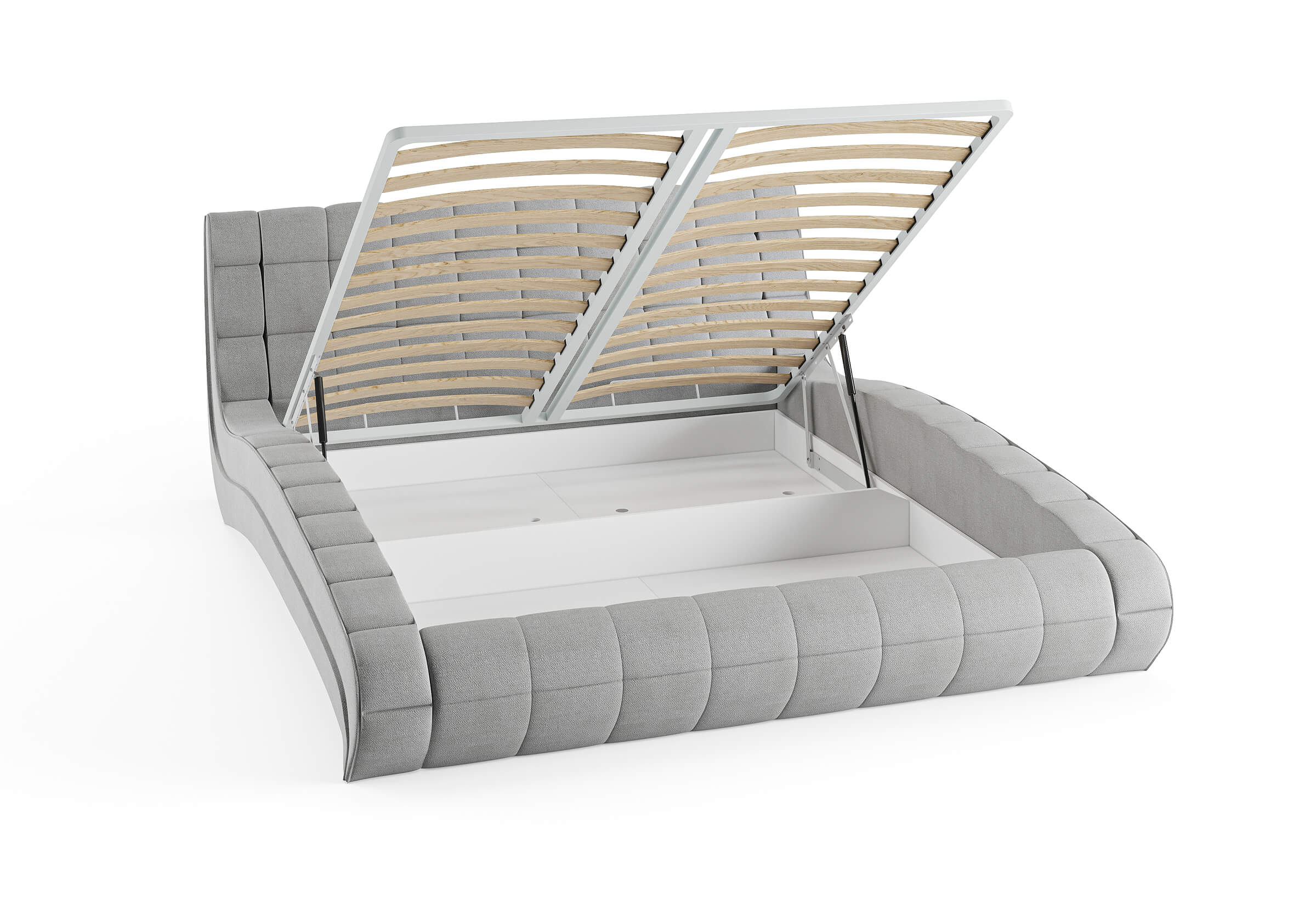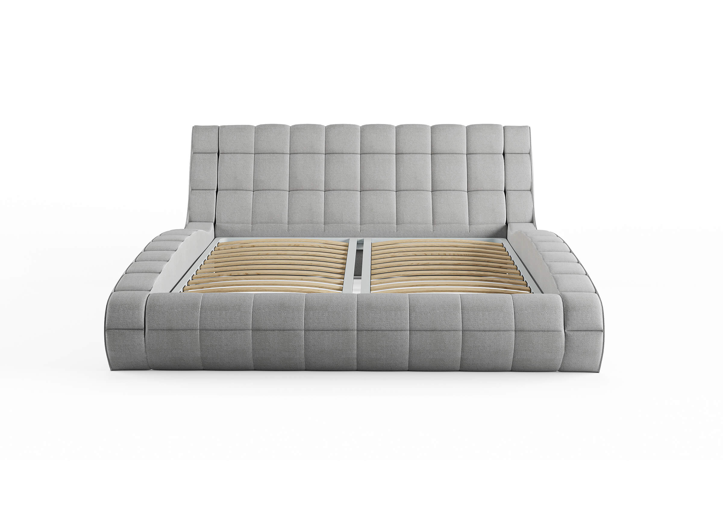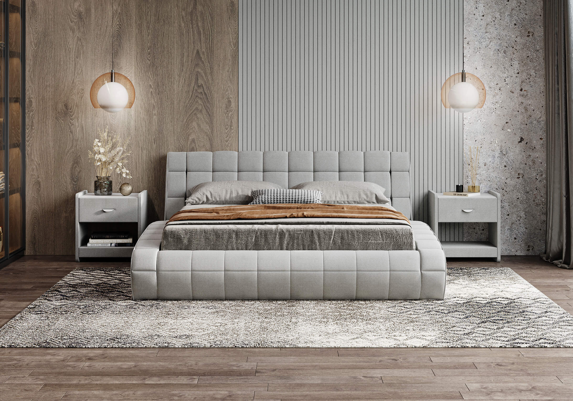 Давно искала аккуратную кровать в стиле лофт. Эта понравилась с первого взгляда. Доставили быстро, приятель помог собрать, вместе справились за час. Обивка очень качественная, как на ощупь, так и по крепости. Порвать можно только чем то очень острым. Квадраты кстати не такие явные, как на картинке, так даже лучше. Подъемный механизм работает как часы.