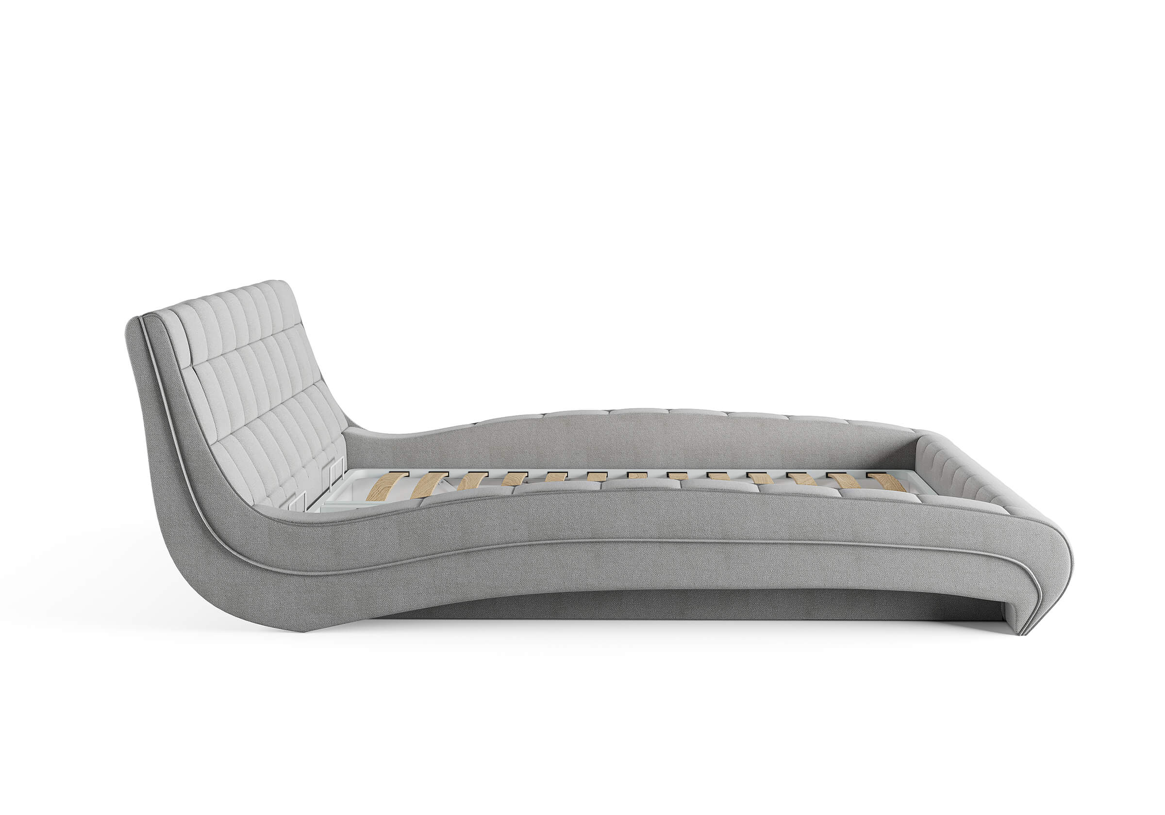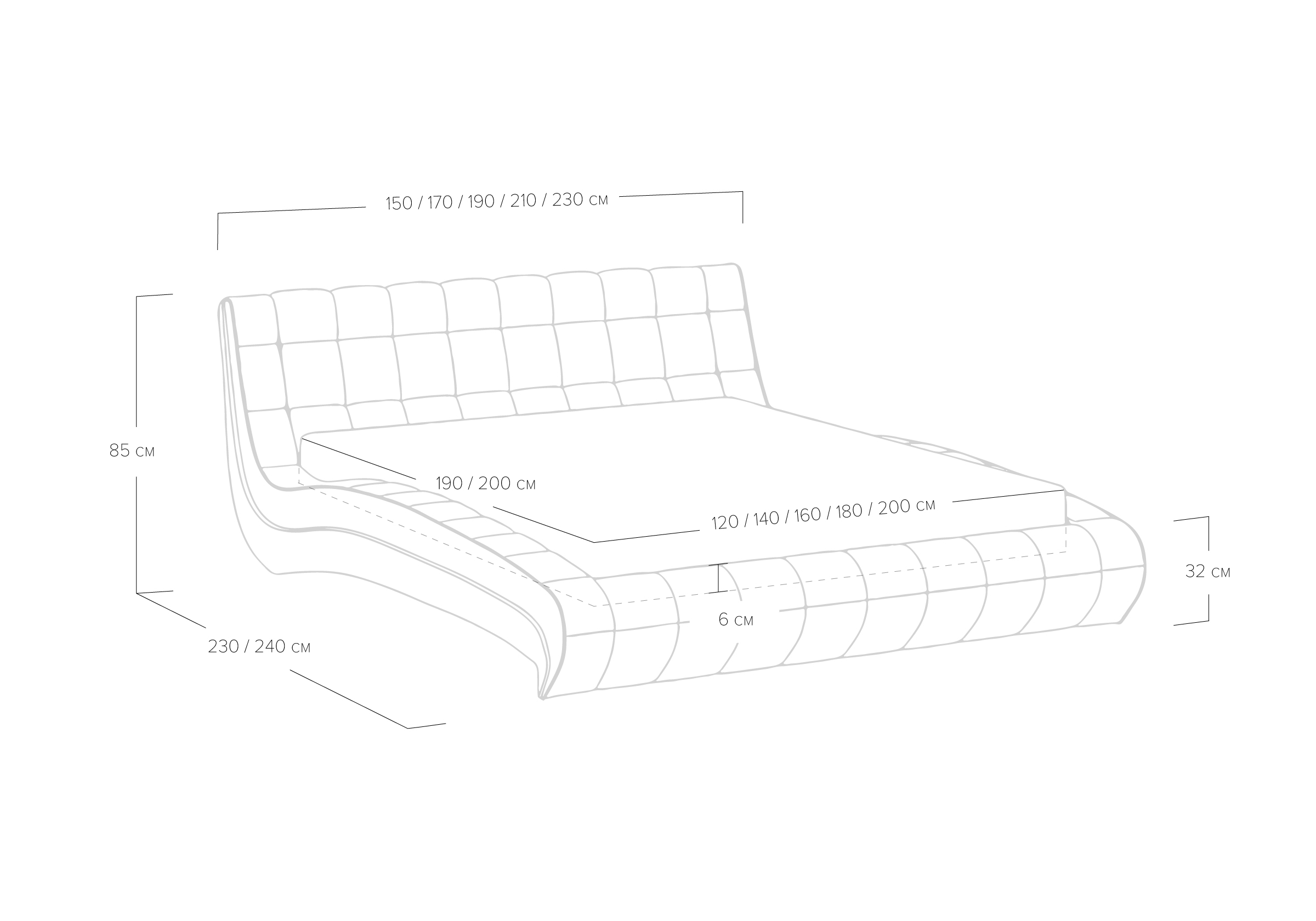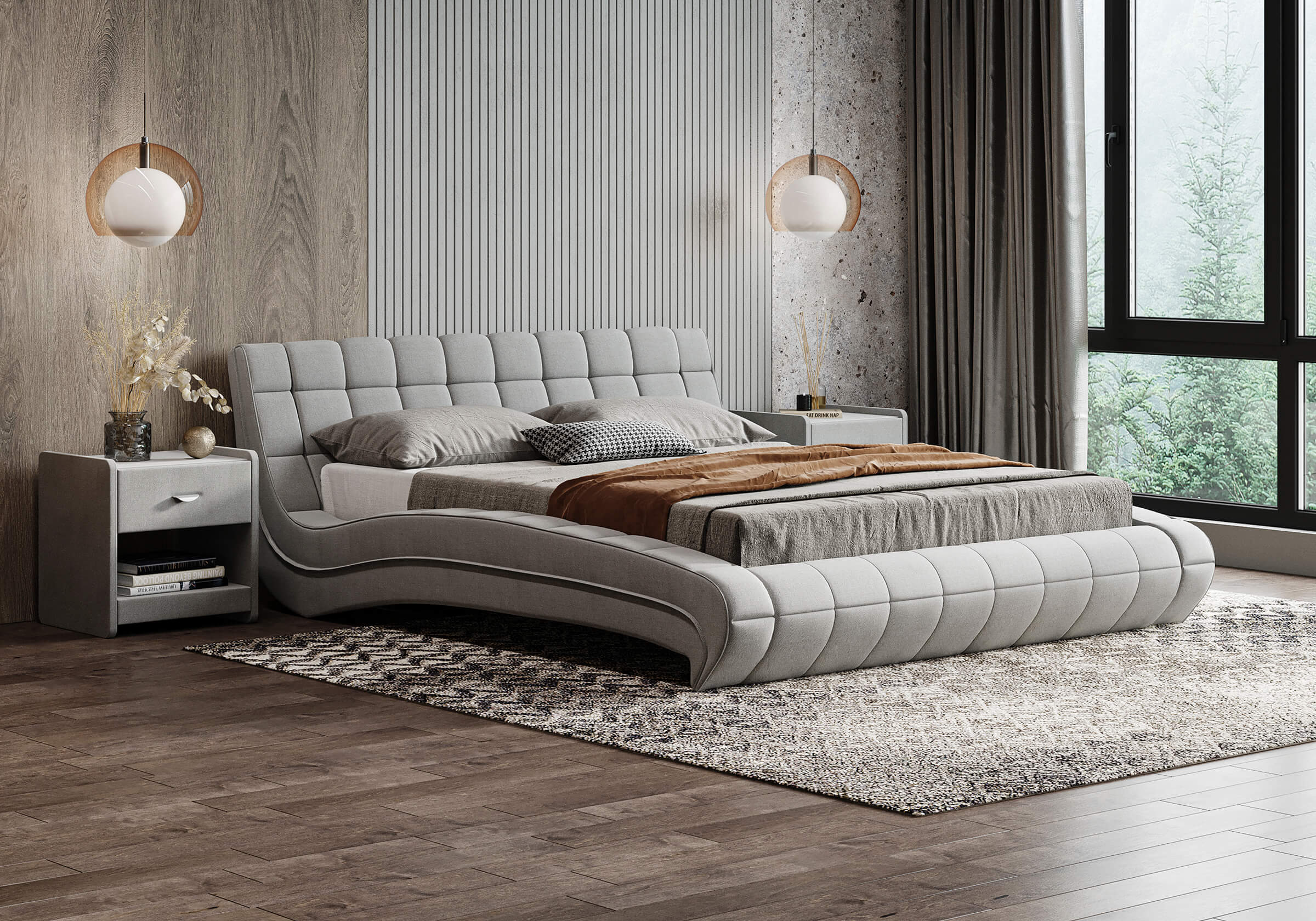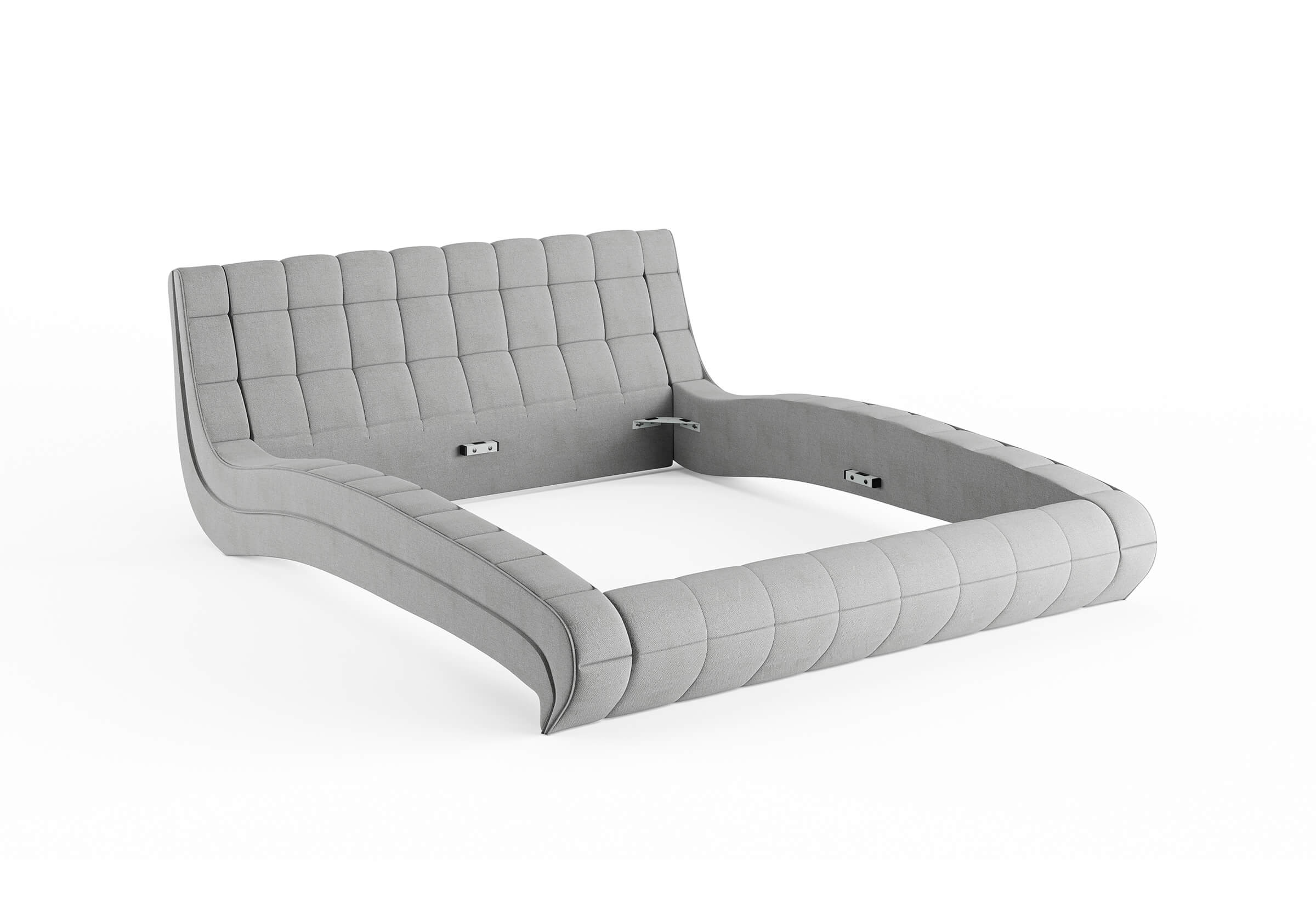 Изящная и элегантная интерьерная кровать в современном стиле с изысканным внешний видом и плавными линиями. Модель изготовлена из ДСП и МДФ. Обратная сторона изголовья также обита основным материалом. Кровать в современном стиле Milano может изготавливаться из материала и цвета на выбор.  При необходимости кровать может быть укомплектована разборным или неразборным металлическим основанием с ламелями, подъемным механизмом с бельевым ящиком.