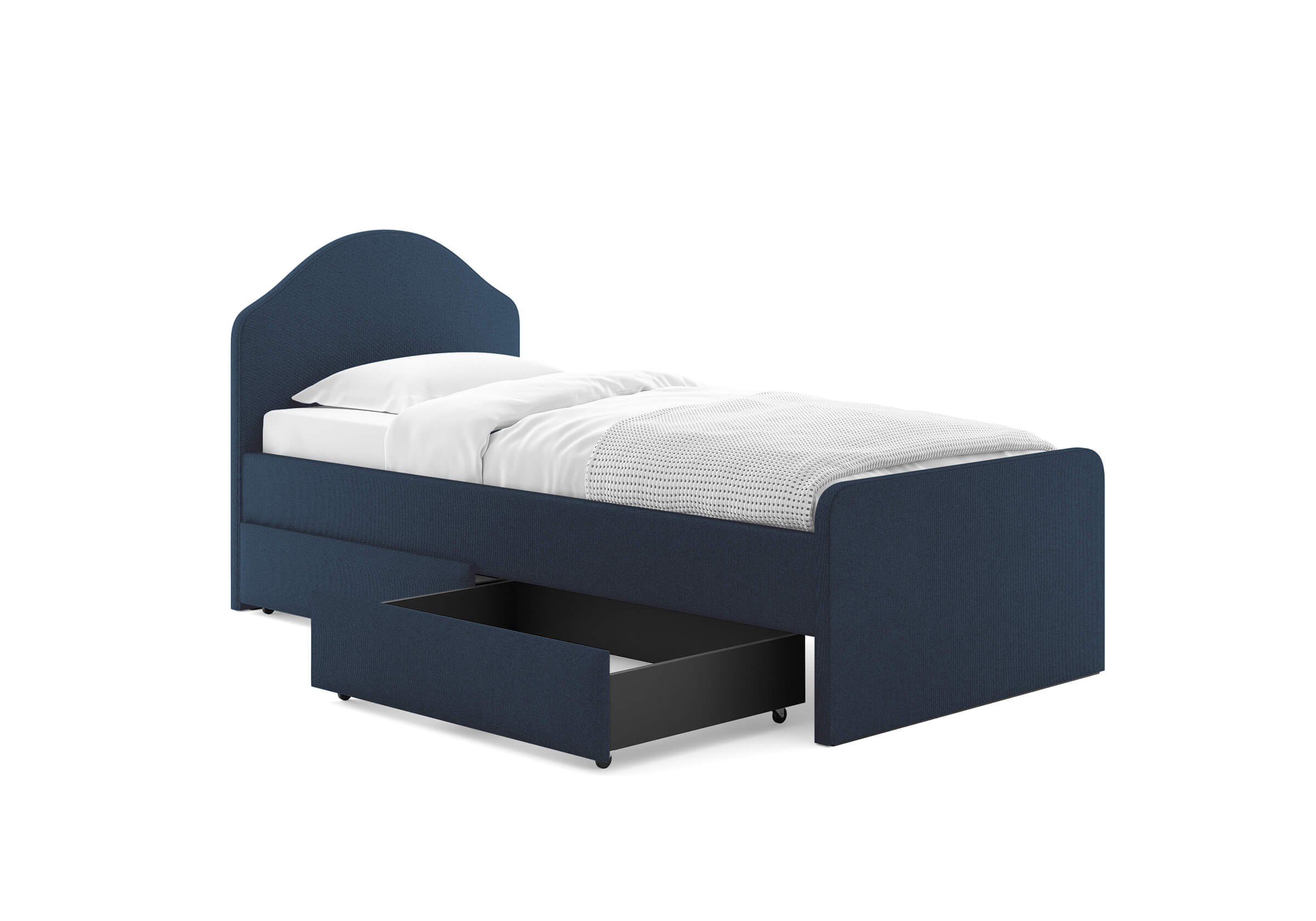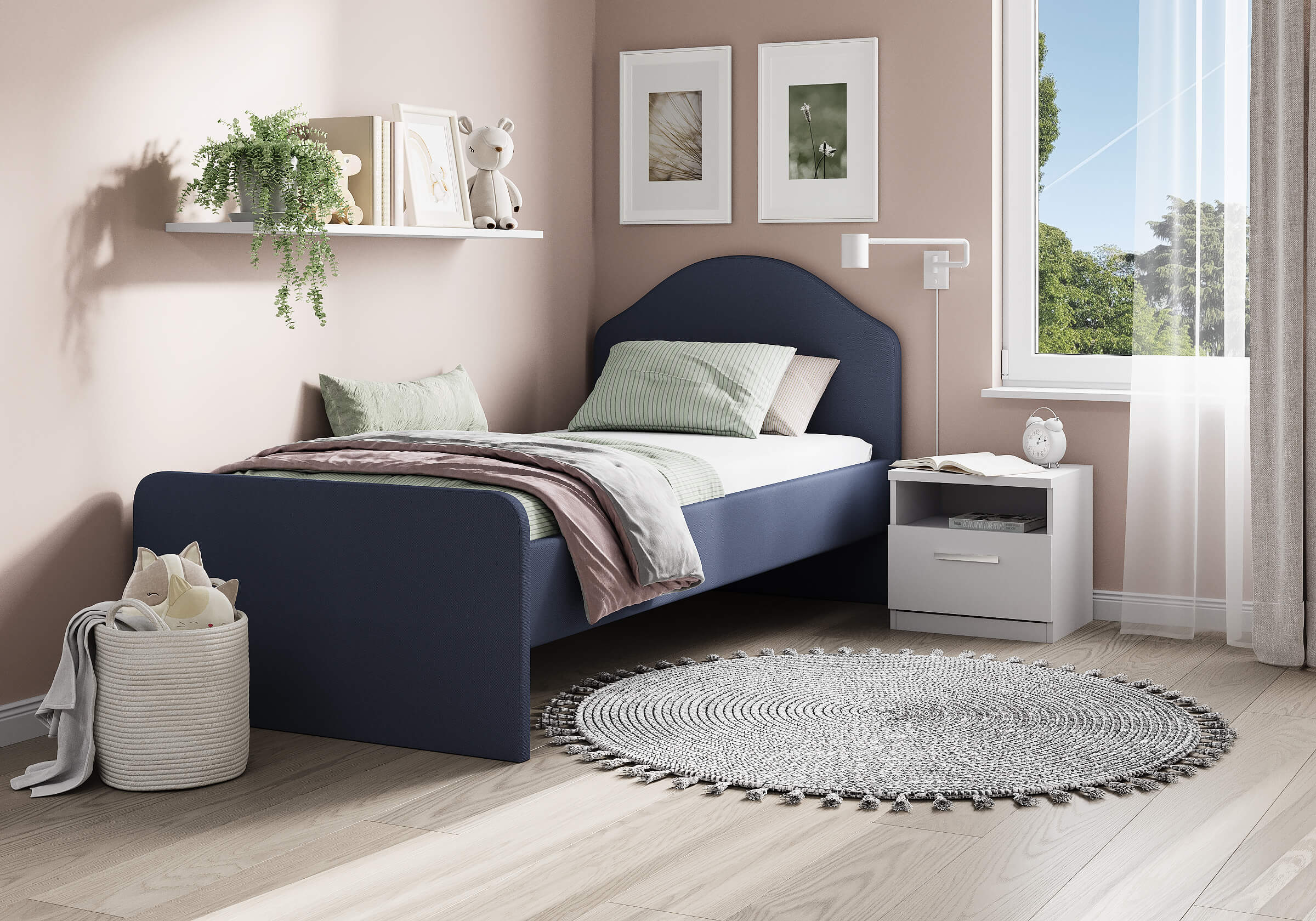 Кровать Emma, в зависимости от ткани обивки, будет актуальна для спален в классическом стиле, современном и скандинавском. Например, в обивочной ткани рогожка модель подойдет для интерьера в скандинавский стиле, а в велюре органично впишется в классический стиль. Мягкое изголовье с изгибом, плавные линии изножья, узкие царги делают кровать запоминающейся и уютной. Увеличенное расстояние до царг способствует легкой уборке, а также позволяет дополнительно приобрести выкатную тумбу или ящики для хранения вещей. Модель укомплектована ортопедическим основанием с ламелями. Исполнение доступно во всех видах мебельной ткани.