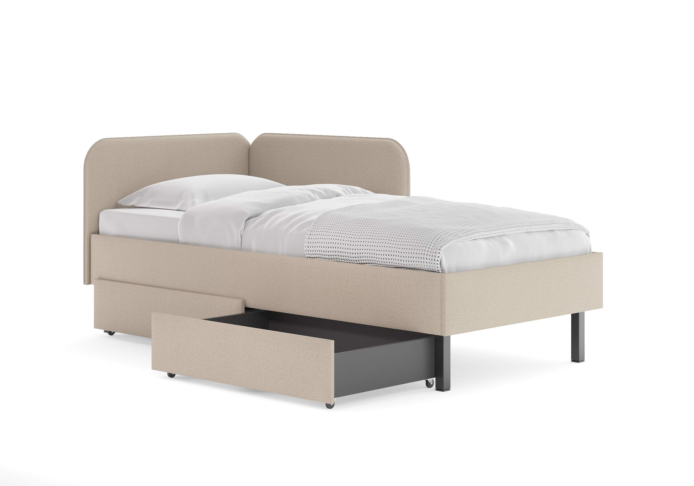 Лаконичная кровать Julia подойдет для спален в скандинавском стиле и стиле минимализм. Мягкое изголовье в рогожке популярных цветов, закругленные углы, декоративный кант, узкие царги делают кровать универсальной для большинства современных интерьеров. Угловое изголовье создает уютную атмосферу. Боковая спинка составляет половину царги, устанавливается на выбор с правой, или с левой стороны кровати. Благодаря двойному изголовью кровать можно разместить в любом месте комнаты. Увеличенное расстояние до царг способствует легкой уборке под кроватью роботом – пылесосом. Модель может комплектоваться только неразборным ортопедическим основанием с ламелями. Основание выполняет роль металлического каркаса кровати, изголовье и царги надежно крепятся между собой, обеспечивая прочность и устойчивость. Опционально устанавливаются ящики для хранения в ткани (приобретаются дополнительно) и тумбы выкатные(приобретаются дополнительно)