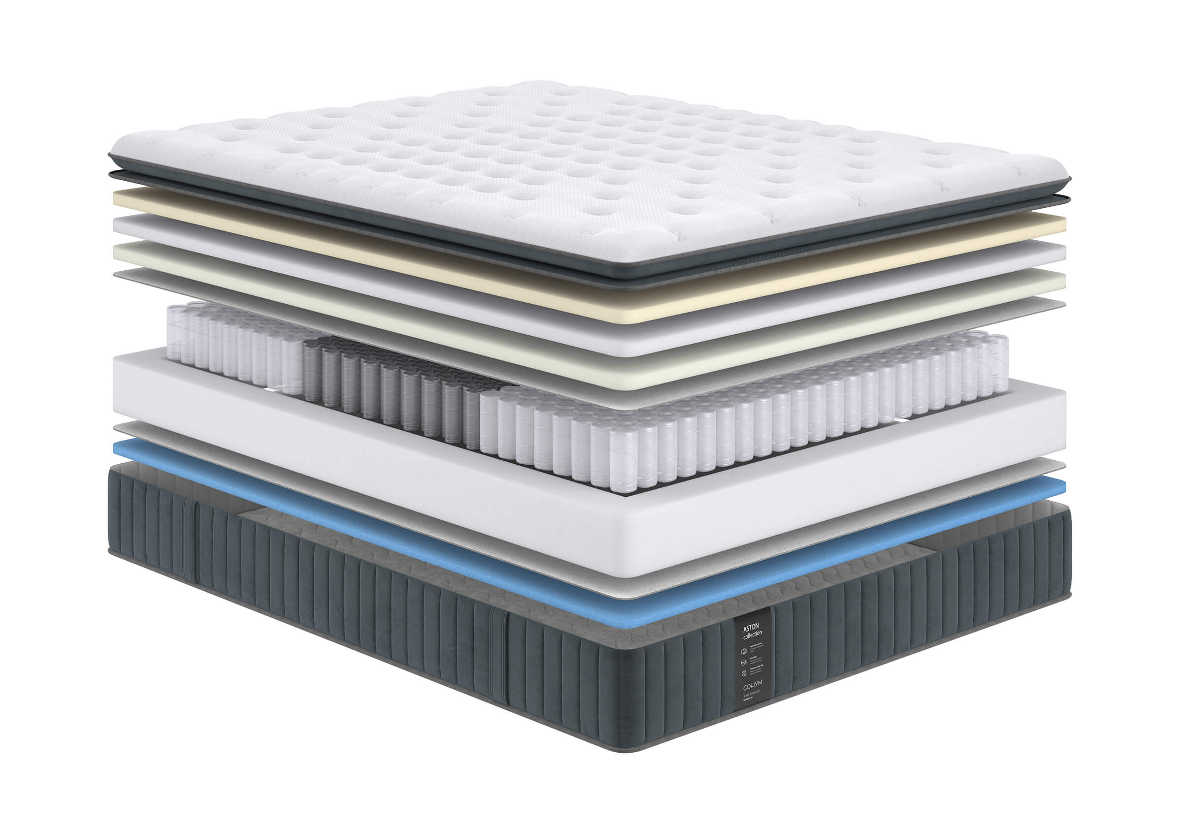 Система комфортности с оптимально подобранными слоями из современных пен разной плотности и жесткости, с разными свойствами, для здорового и комфортного сна.