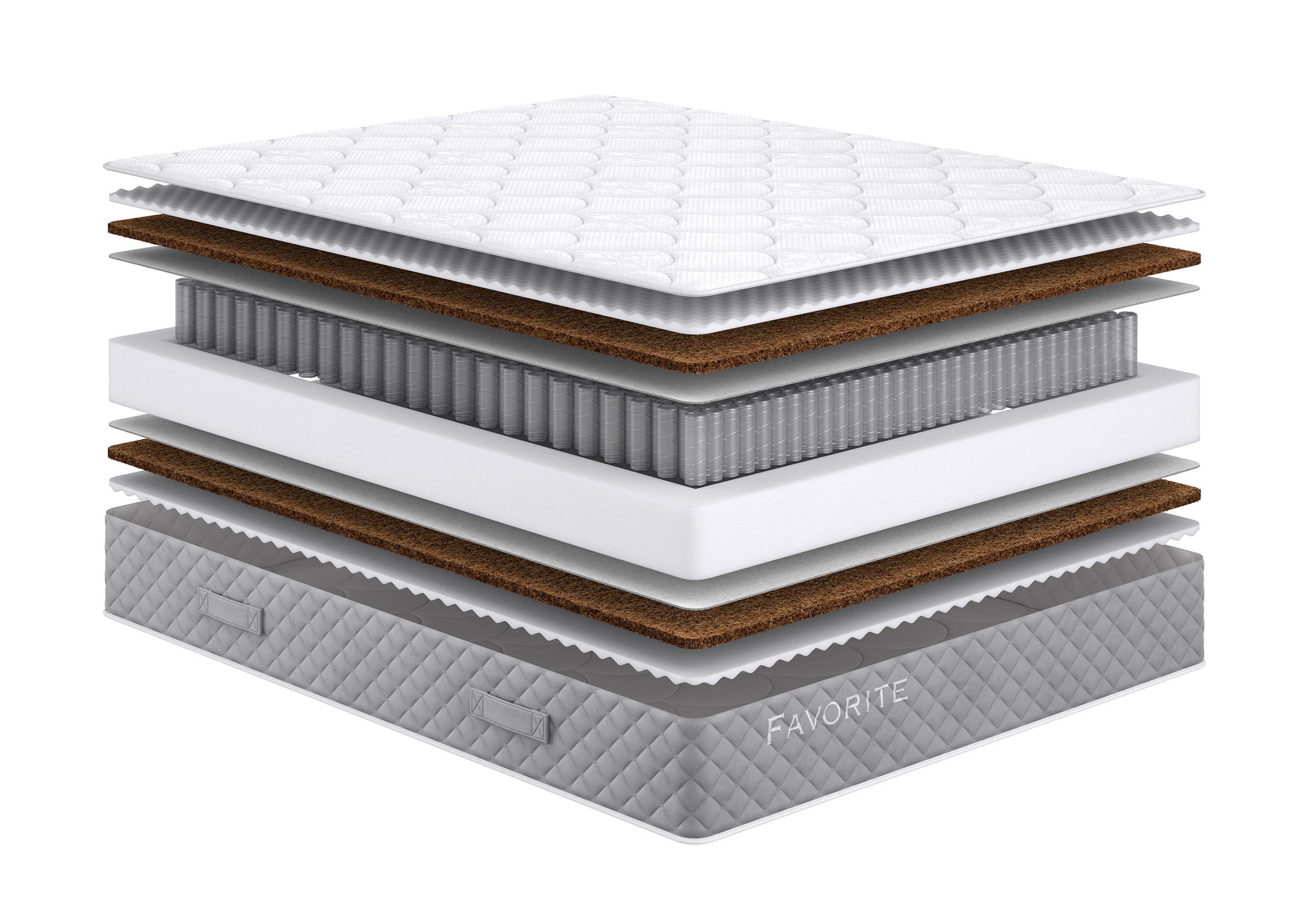 Природный натуральный материал. Состоит из волокон ореха кокосовой пальмы, пропитанных составом из натурального латекса. Гипоалергенен, обеспечивает циркуляцию воздуха и теплообмен.