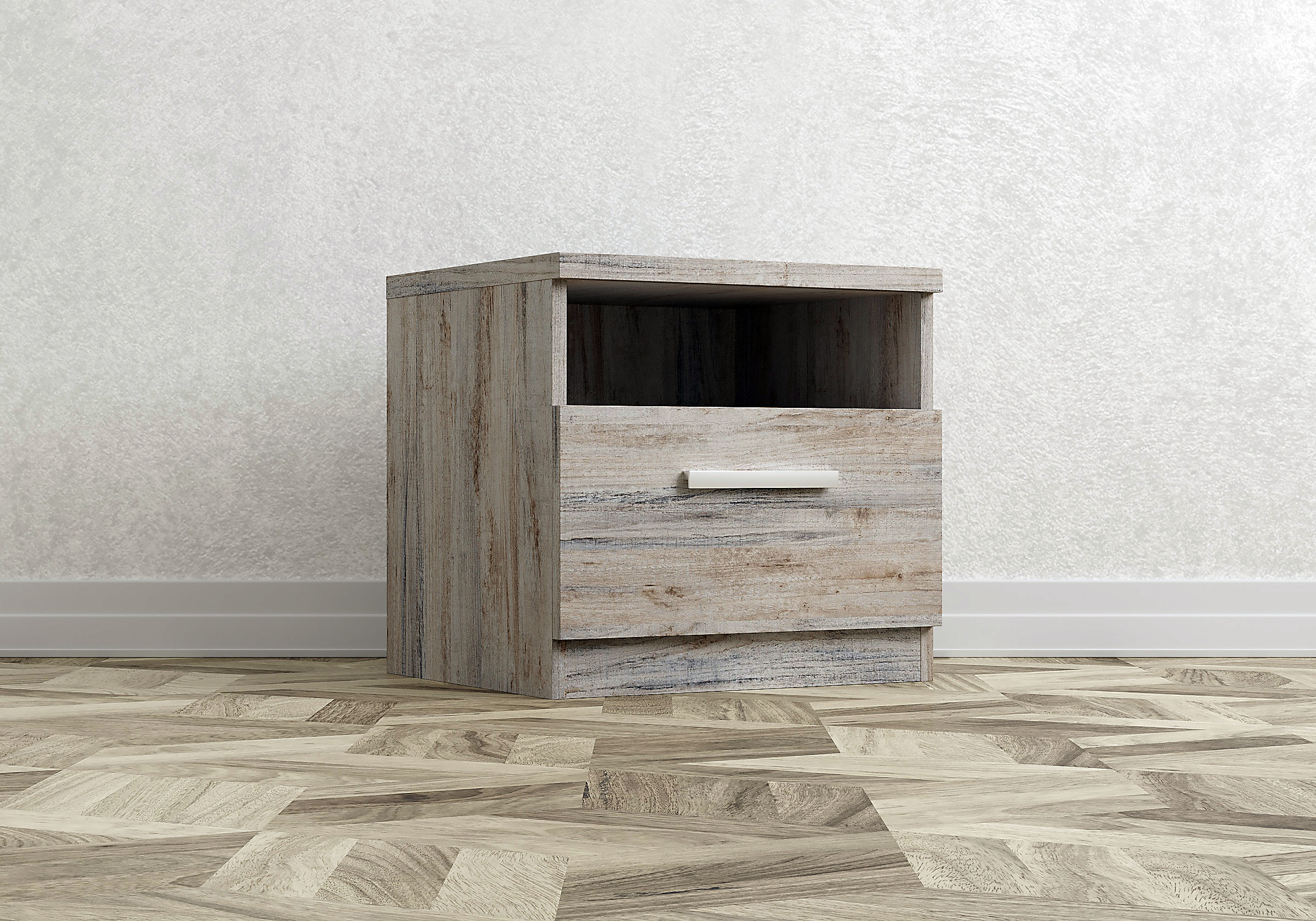 Прикроватная тумба с одним выдвижным ящиком и нишей сочетается с любыми моделями кроватей. Прямые углы, лаконичные  металлические ручки, увеличенная толщина плиты ЛДСП 25 мм. Шариковые направляющие без доводчика. Стильная и практичная тумба прекрасно дополнит собой любой интерьер.