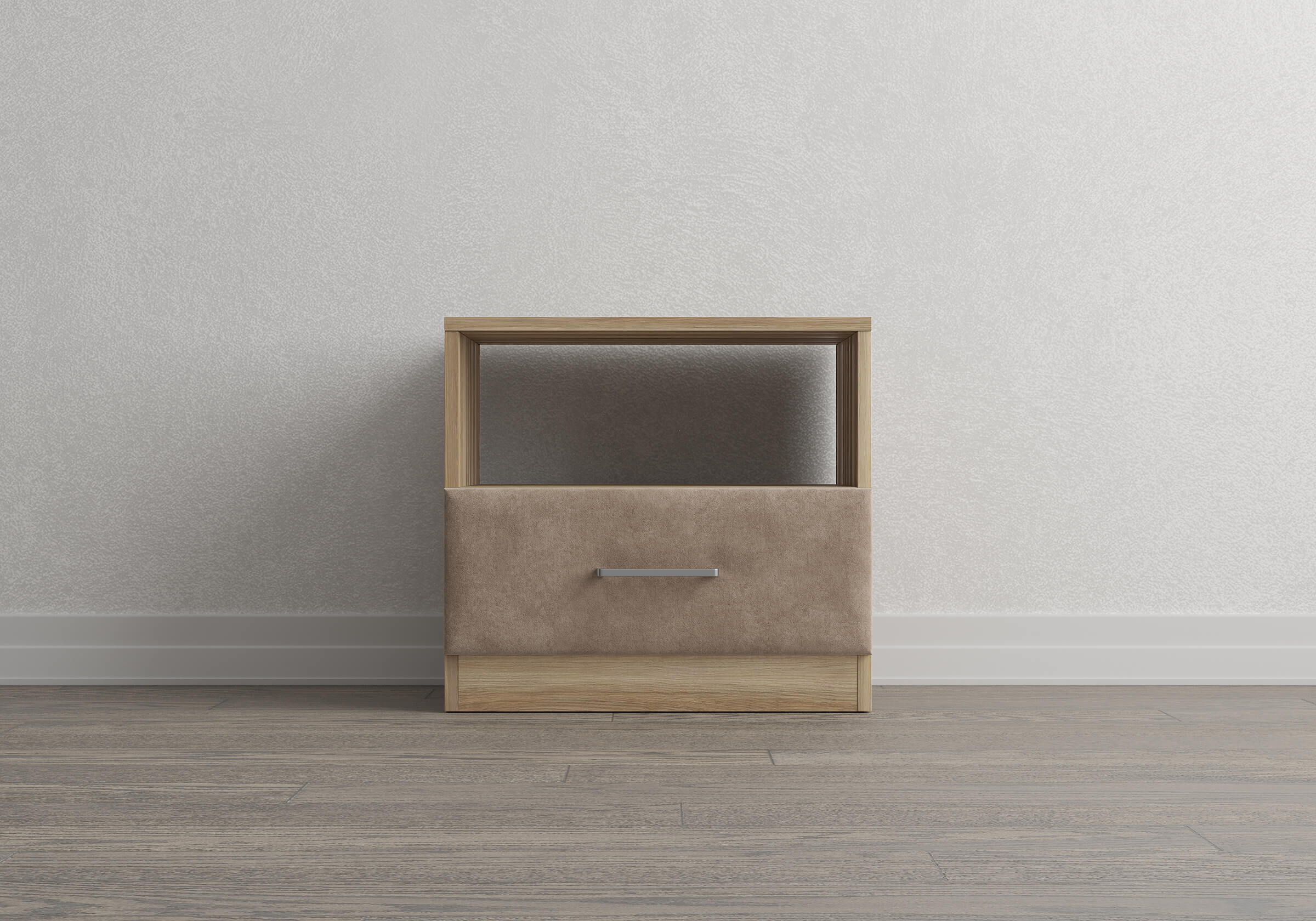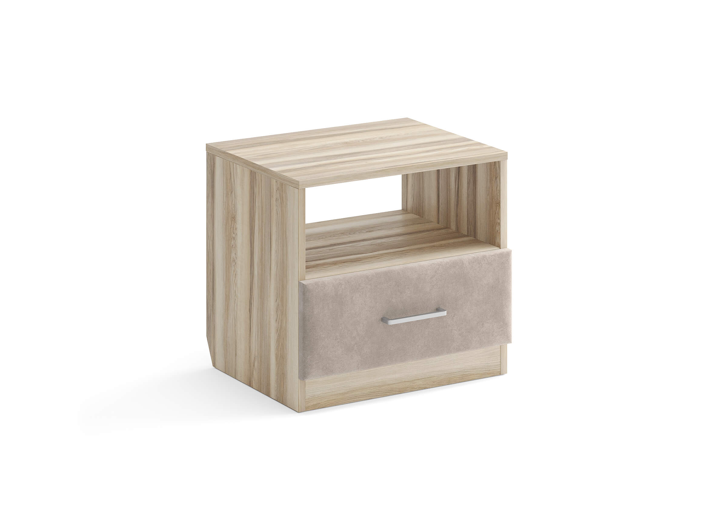 Элегантная комбинированная тумба, сочетающая в себе лаконичность ЛДСП и уют мягких фасадов ящиков, обтянутых тканью. Конструкция тумбы предусматривает открытую нишу для мелочей и вместительный выдвижной ящик с направляющими скрытого монтажа и доводчиками. Корпус из ЛДСП гарантирует долговечность и устойчивость к механическим повреждениям, а мягкие фасады в ткани и изящные металлические ручки добавят уют. Большое разнообразие текстур и цветовых решений для гармоничной интеграции в любой интерьер.