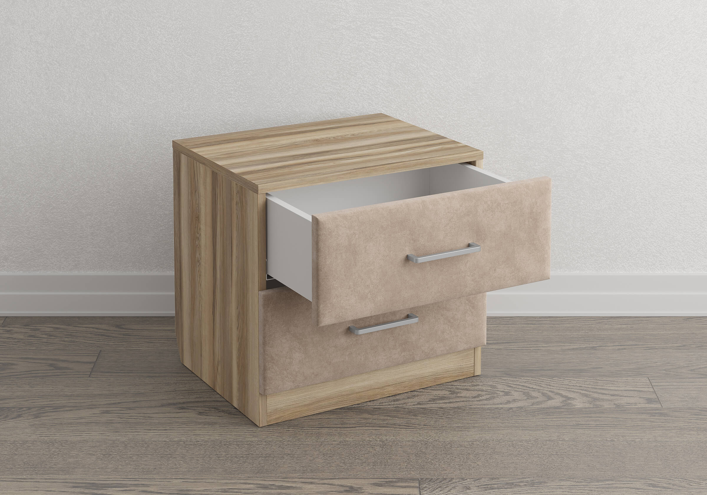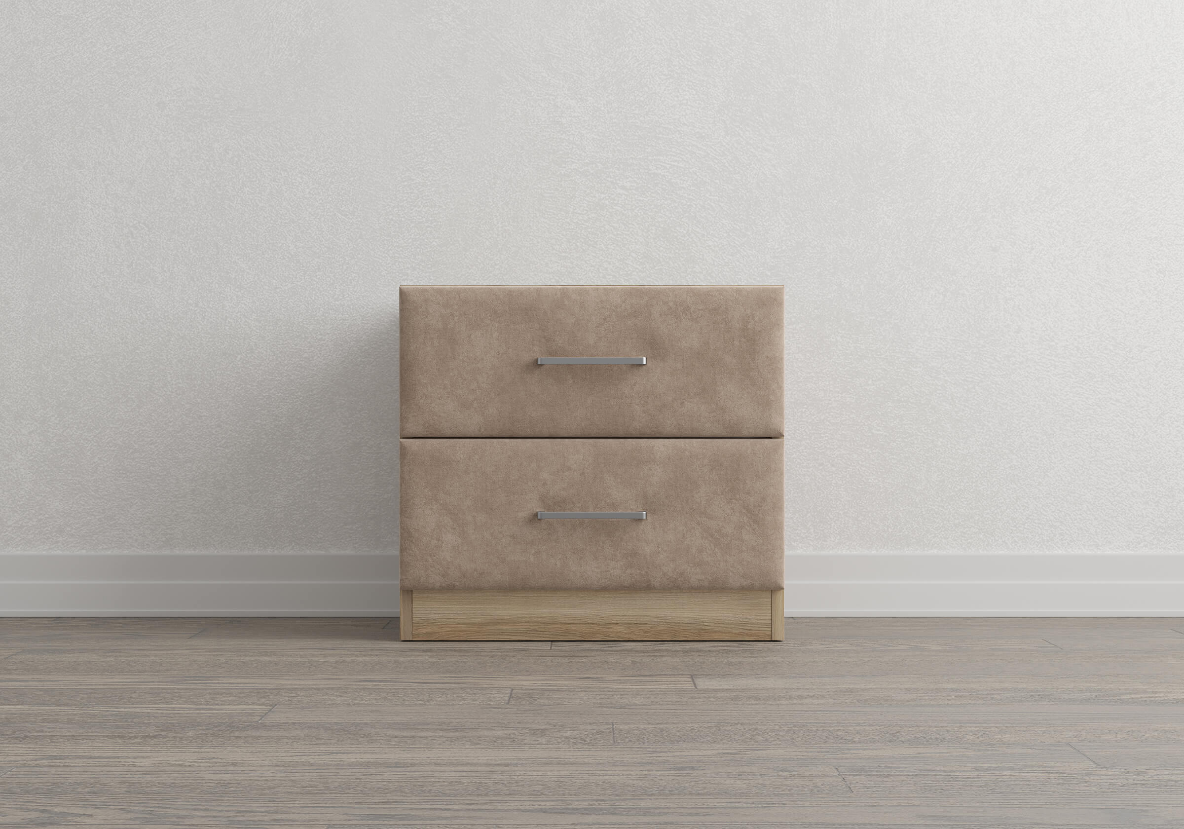 Элегантная комбинированная тумба, сочетающая в себе лаконичность ЛДСП и уют мягких фасадов ящиков, обтянутых тканью. Конструкция тумбы предусматривает два вместительных выдвижных ящика с направляющими скрытого монтажа и доводчиками. Корпус из ЛДСП гарантирует долговечность и устойчивость к механическим повреждениям, а мягкие фасады в ткани и изящные металлические ручки добавят уют.  Большое разнообразие текстур и цветовых решений для гармоничной интеграции в любой интерьер.