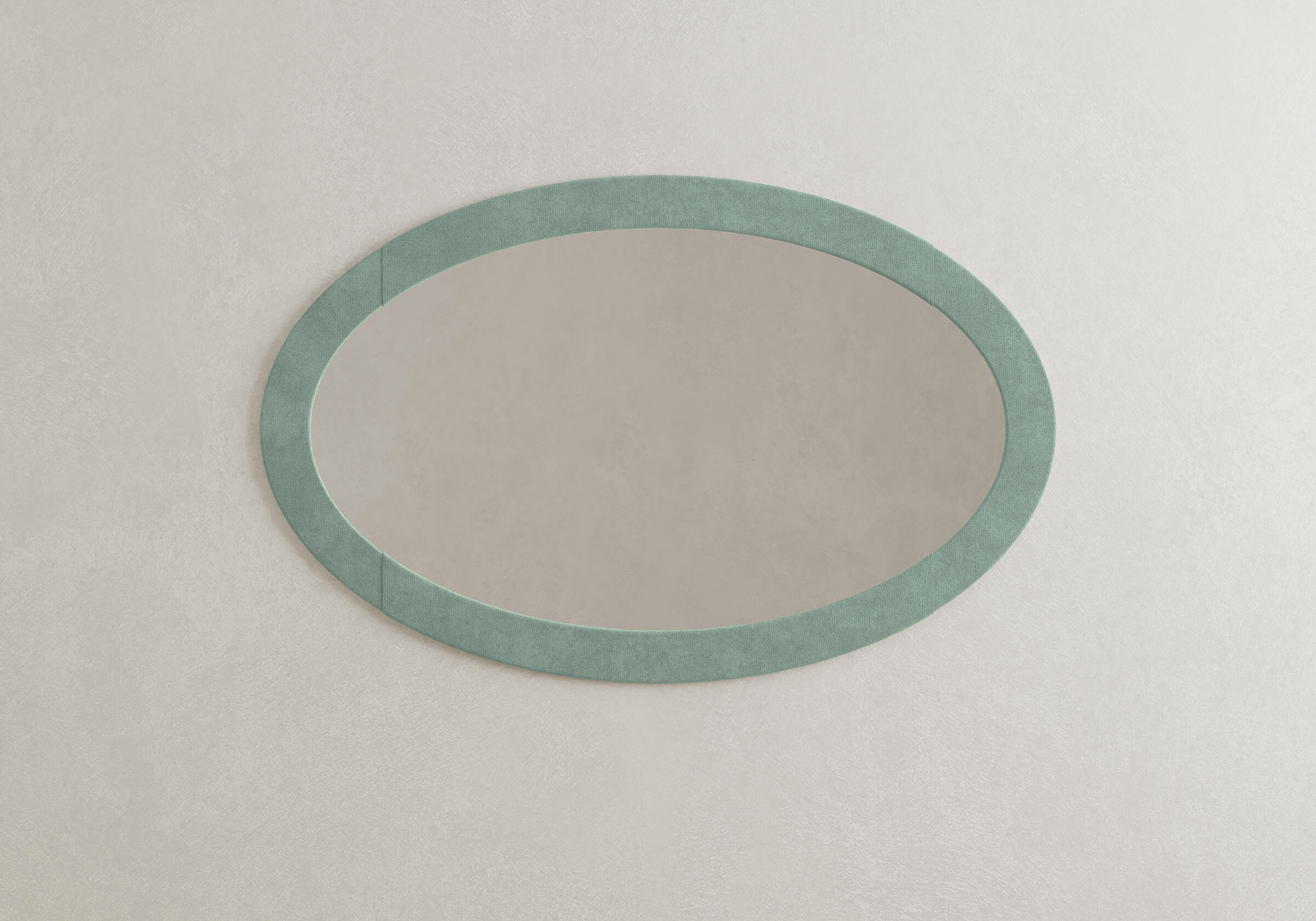 Зеркало выглядит с одной стороны стильно, а с другой – уютно. Все благодаря раме. Она объемная, тканевая, в спальне на стене выглядит очень красиво. Чистить зеркало очень удобно.