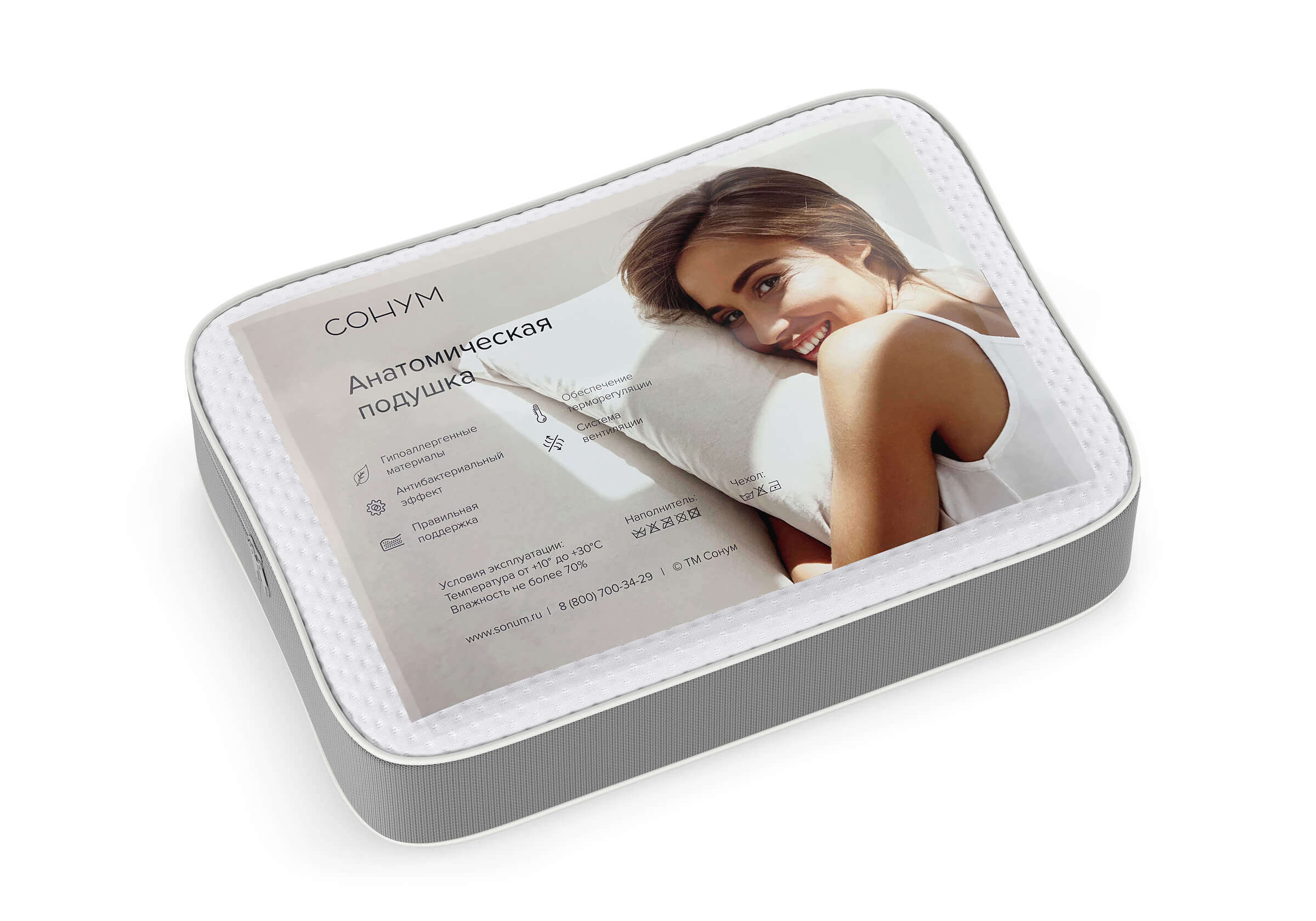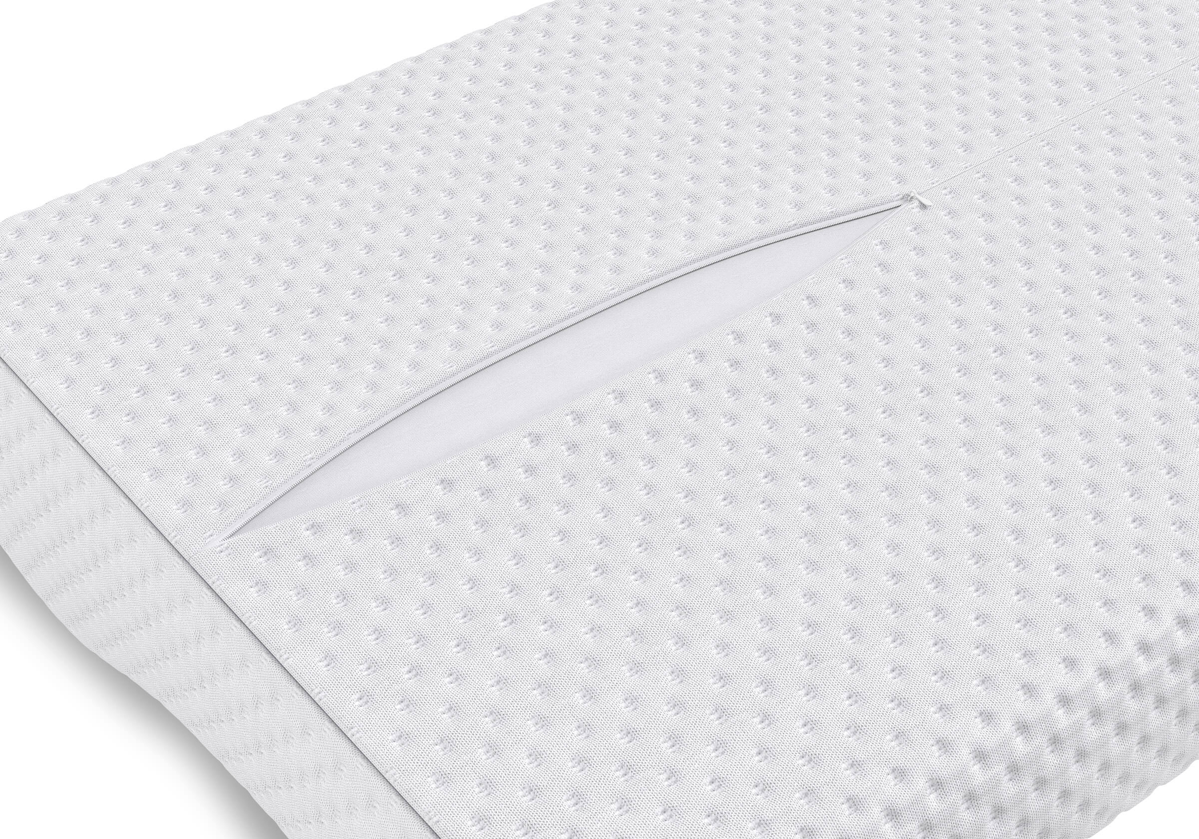 Внешний чехол выполнен из мягкого трикотажа и поддерживает естественную циркуляцию воздуха, а дополнительный внутренний чехол защищает наполнение подушки от загрязнений и поверхностных повреждений. Внешний чехол можно снять и постирать, поэтому с ним легко поддерживать свежесть спального места.