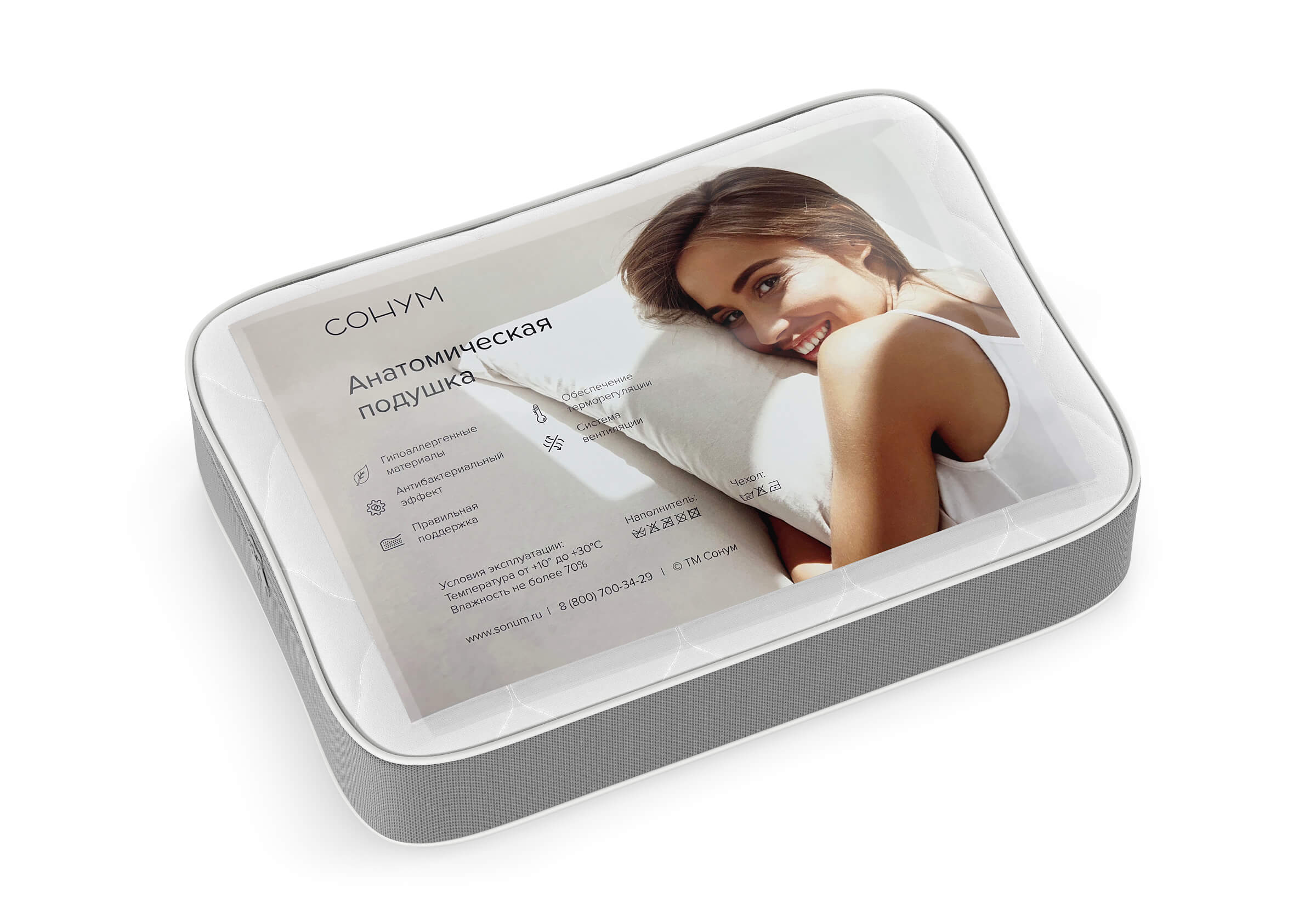 Подушка Soft эргономичной формы уменьшенного размера. Подушка изготовлена из гипоаллергенного материала Foam, который реагирует на давление и тепло. Подушка Софт идеально подстраивается под форму головы и шеи. Поставляется в съемной наволочке на молнии.