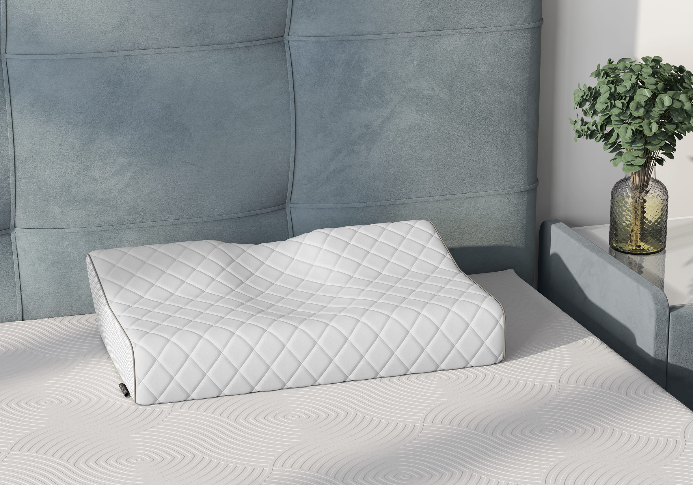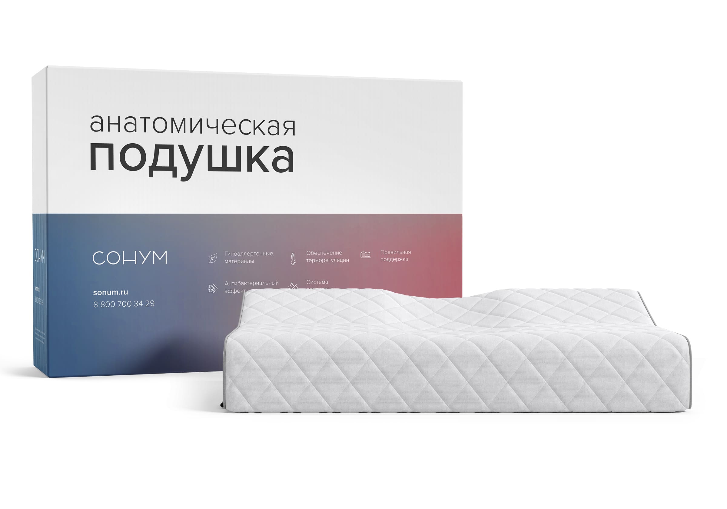 Подушка с выемкой под плечо и для шеи, изготовленная из пены с «памятью» формы, деликатно подстраивается под физиологические особенности спящего. Уникальная форма подушки с зоной фиксации головы и выемками для под плечи и шею, для сна на спине или на боку поддерживает голову в анатомически правильном положении. Гипоаллергенный материал не оказывает обратного давления.